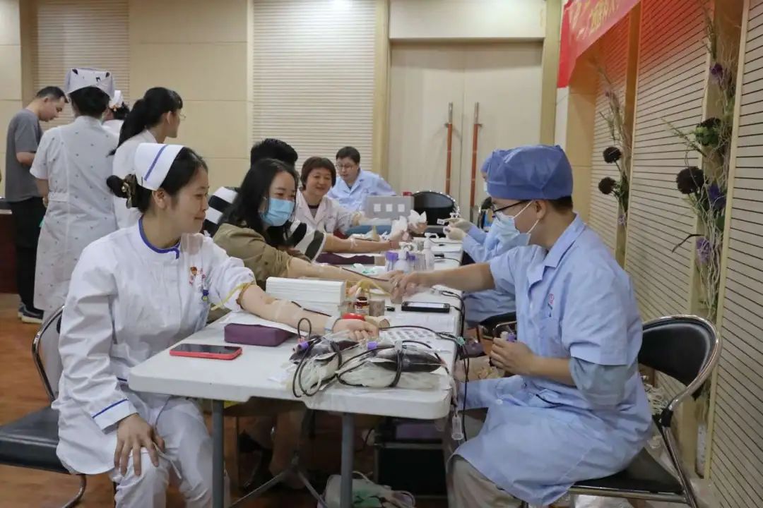 在现场工作人员的引导下,大家进行填表、登记、化验、抽血等一系列流程,整个活动现场井然有序。队伍中有常年坚持献血的党员干部,也有初次参与献血的年轻面孔,他们纷纷挽袖将爱心传递,用满腔热血保障临床用血供应,为临床用血患者搭建爱的桥梁,这既是对医院“尚德 惟精”核心理念的生动实践,同时也彰显了新时代医务人员的风采与担当。活动当天共有96人成功献血,共献血35500毫升。