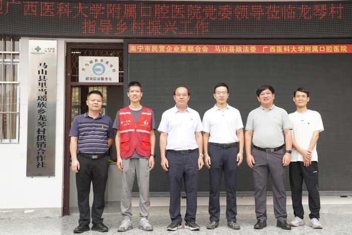 为进一步推动驻村帮扶工作走深走实,全面推进乡村振兴,7月31日,附属口腔医院党委书记覃远汉,副书记、纪委书记邝海,总会计师杨雪毅一行赴医院乡村振兴对口帮扶村马山县里当乡龙琴村开展实地走访调研及入户慰问。