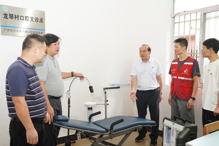 调研中,覃远汉认真听取了驻村第一书记韦家强对龙琴村乡村振兴工作进展情况汇报,并深入村委帮扶车间、口腔义诊点等地进行实地考察,全面了解村党组织建设、产业发展、基础设施建设等工作的最新进展,分析当前存在的困难和问题,并提出针对性建议。随后,覃远汉一行还走进龙琴村监测户家中进行走访慰问,送上院党委的关心与关怀。