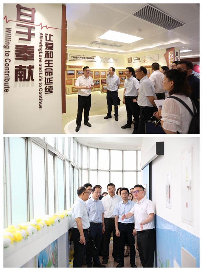 移植医学研究所副所长蓝柳根详细介绍二附院器官捐献与移植学科建设管理情况,并与对方就移植医学体系建设中遇到的问题进行了深入交流和探讨。会后,张英才一行实地参观了二附院器官捐献管理中心、移植医学中心二病区病房及移植医学实验室,详细了解学科发展规划、运行模式、工作流程、规范化管理体系及政策支持。他们对二附院在器官捐献工作中取得的显著成效及在推动器官捐献事业中的积极作用,尤其是为捐献者及家庭提供的全方位服务保障和人道关怀方面的做法和成效表达了高度赞誉。