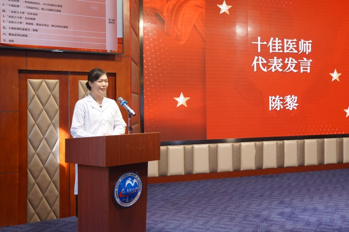 院党委副书记李松峰宣读了医院表彰文件,授予韦家强等10名医师“十佳医师”称号,授予陈志兴等16名医师“优秀医师”称号。随后,院领导分别为“十佳医师”“优秀医师”获奖者颁发荣誉证书,为他们送上节日的祝福。十佳医师代表陈黎在发言中分享了自己的从医心路历程,表示将以更加饱满的热情、更加精湛的医术、更加贴心的服务,为患者的口腔健康保驾护航。