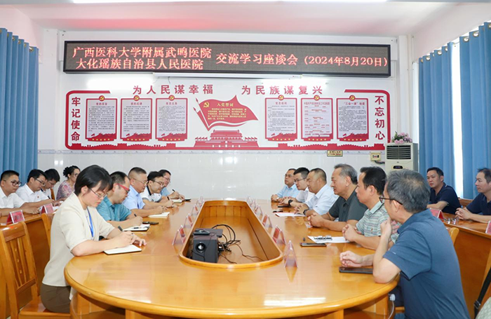 座谈会上,大化瑶族自治县人民医院院长韩献介绍了医院发展情况,并表示医院对于提升医疗技术水平、为县域居民提供更优质的医疗服务有着迫切的需求,希望双方能以此次参观交流为契机,进一步加强在医疗技术提升、医学人才培养等方面的合作,提升医疗服务软实力,为大化县域百姓提供更优质、更高效、更便捷的医疗服务。