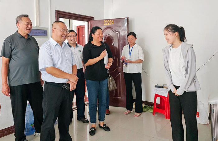 座谈会结束后,张剑锋实地走访了学校本科实习生宿舍,并与实习生面对面交流,悉心倾听同学们的生活、学习情况和对教学管理工作的意见和建议。他以自身医学职业发展经历为引,勉励同学们做医学使命的“担当者”、做时间的“经营者”、做心态的“主导者”,感悟基层实习经历,静心自我审视、坚定信念、收获成长,不断提升知识水平和业务技能。