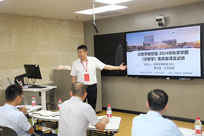 唐卫中一行首先来到1号楼智慧教室,深入检查诊断学教研室集体备课和教师试讲情况,并就教学时间分配、临床教学案例融入、教学方法手段、教学语言仪态、师生互动交流和课件制作等方面提出了宝贵意见建议。