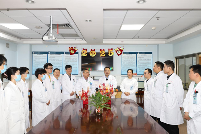 2月5日上午,附属武鸣医院党委书记朱小东、院长张剑锋等医院领导班子成员率相关职能科室负责人,深入临床、医技、行政、后勤等科室走访慰问干部职工,并调研了解科室春节期间及节后工作开展情况。