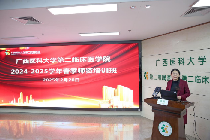 2月14日—2月23日,二附院开展2024-2025学年春季学期师资培训班。医院党委书记罗杰峰、院长韦庆军、党委副书记黄惠桥、副院长黄莉出席开幕式,全院各教研室主任、教研室副主任、教研室秘书及教师200余人参加培训,开幕式由黄莉主持。