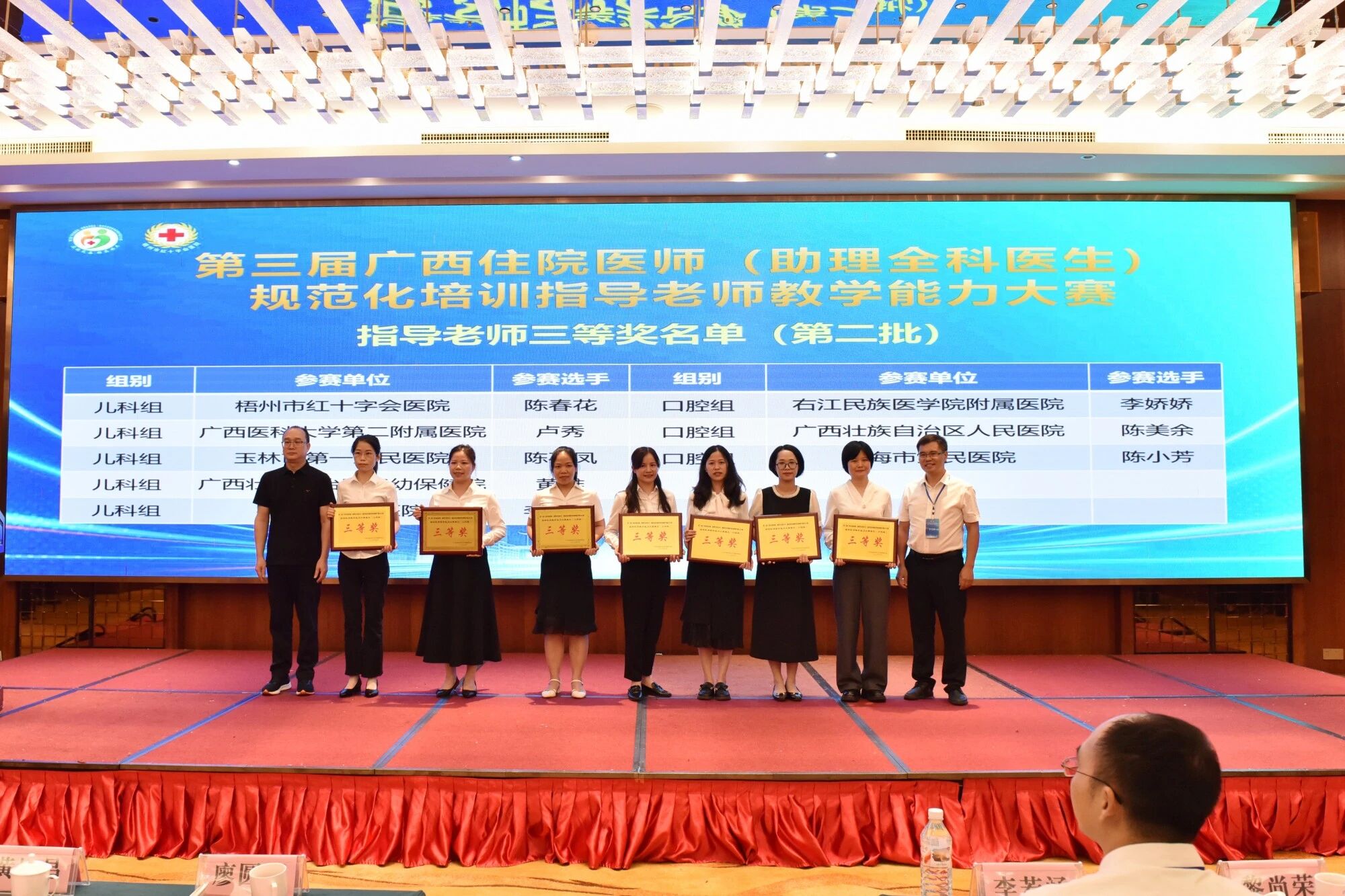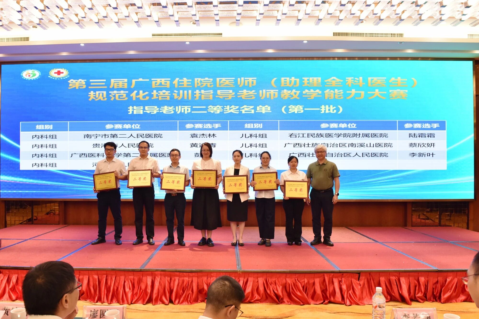 为持续推进自治区住院医师规范化培训内涵建设,提升指导医师教学水平,2025年9月20-21日,由自治区卫生健康委主办的第三届指导医师教学能力大赛在梧州举行,来自全区各培训基地的80余名住培指导医师参赛,广西医科大学第二附属医院内科专业基地住培指导医师彭鹏荣获内科组二等奖、儿科专业基地住培指导医师卢秀荣获儿科组三等奖。