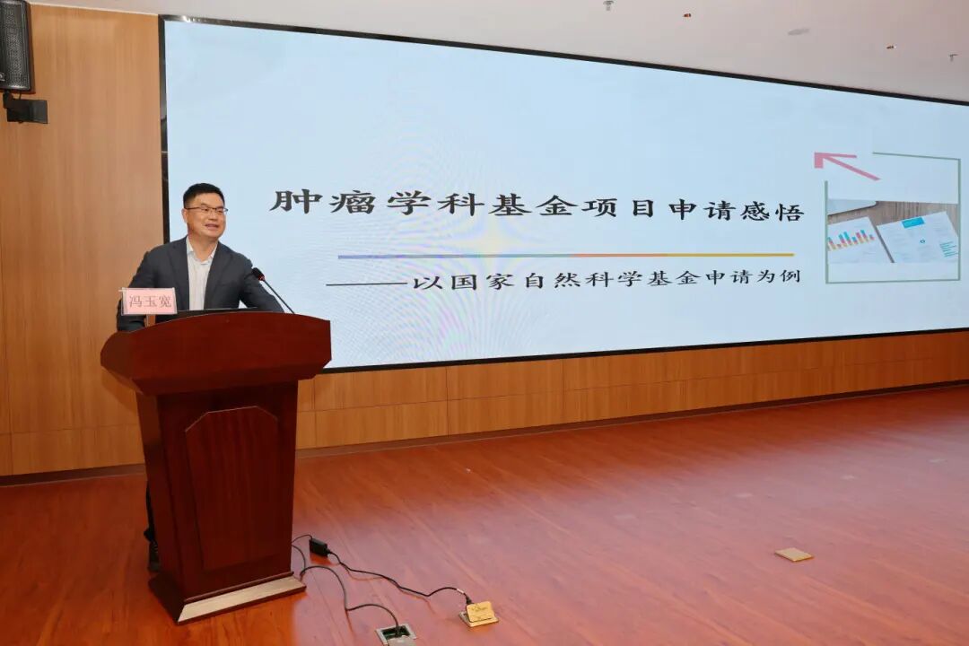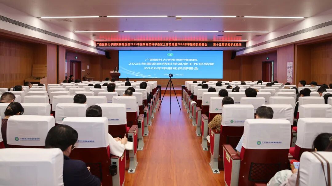 为推进2026年度国家自然科学基金申报工作,深入解读基金政策与评审规则,提升科研人员项目设计与申请书撰写水平,10月22日下午,附属肿瘤医院在五象院区学术报告厅召开2025年国家自然科学基金工作总结暨2026年申报动员部署会(第十三期求索学术论坛)。院长唐勇作动员部署,会议特邀天津医科大学冯玉宽教授、空军军医大学黄启超教授作专题授课。各科室主任、学科带头人、中青年骨干及博士、博士后参会,副院长余红平主持会议。