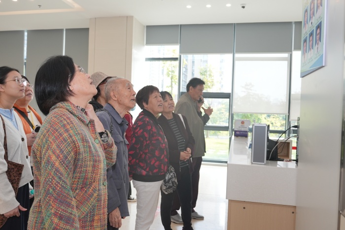 在医院副院长卢小玲的陪同下,老同志们开启了院区探索之旅。走进教学综合楼,宽敞明亮的行政办公区、配套齐全的现代化设施,让曾见证医院初创与成长的老职工们感慨不已:“如今的办公环境比从前好太多,看着医院一步步发展壮大,我们打心底里高兴!”来到可容纳500人的学术报告厅,听工作人员介绍其可满足大型学术会议、技能培训等多元需求时,老同志们纷纷称赞,直言这为医院开展学术交流、提升行业影响力搭建了优质平台。