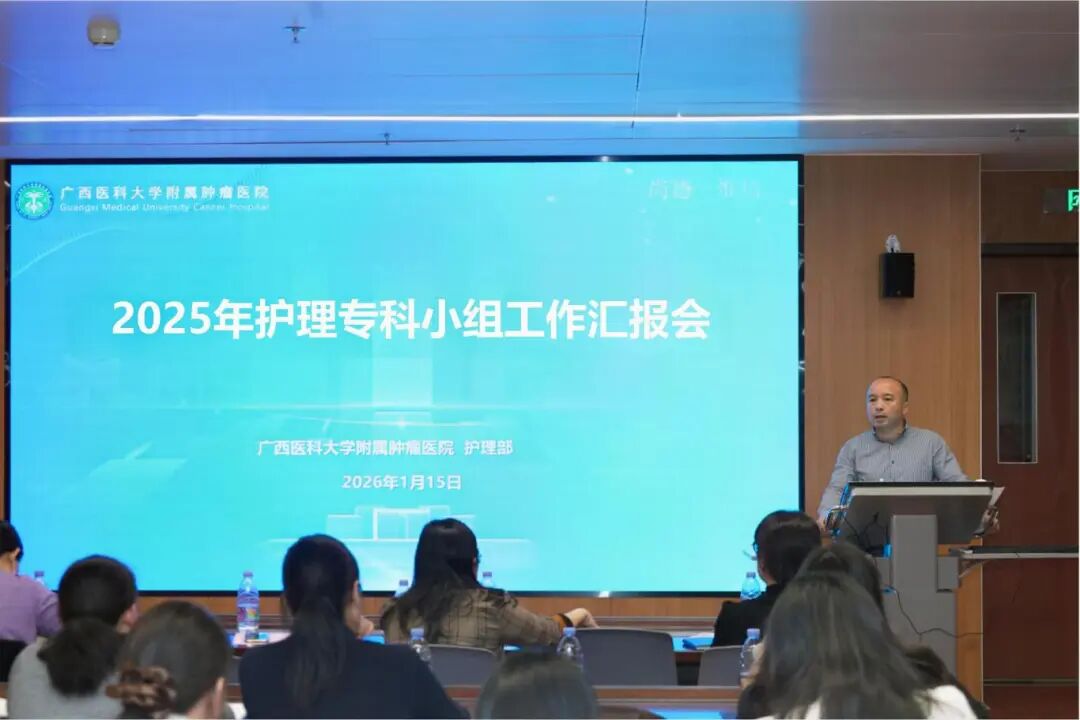 以专科建设为抓手,以质量提升为目标。1月15日,广西医科大学附属肿瘤医院2025年护理专科小组工作总结汇报会顺利召开。医院副院长阳志军出席会议,会议由护理部副主任(主持全面工作)雷奕主持,护理部全体成员及全体护士长参会。