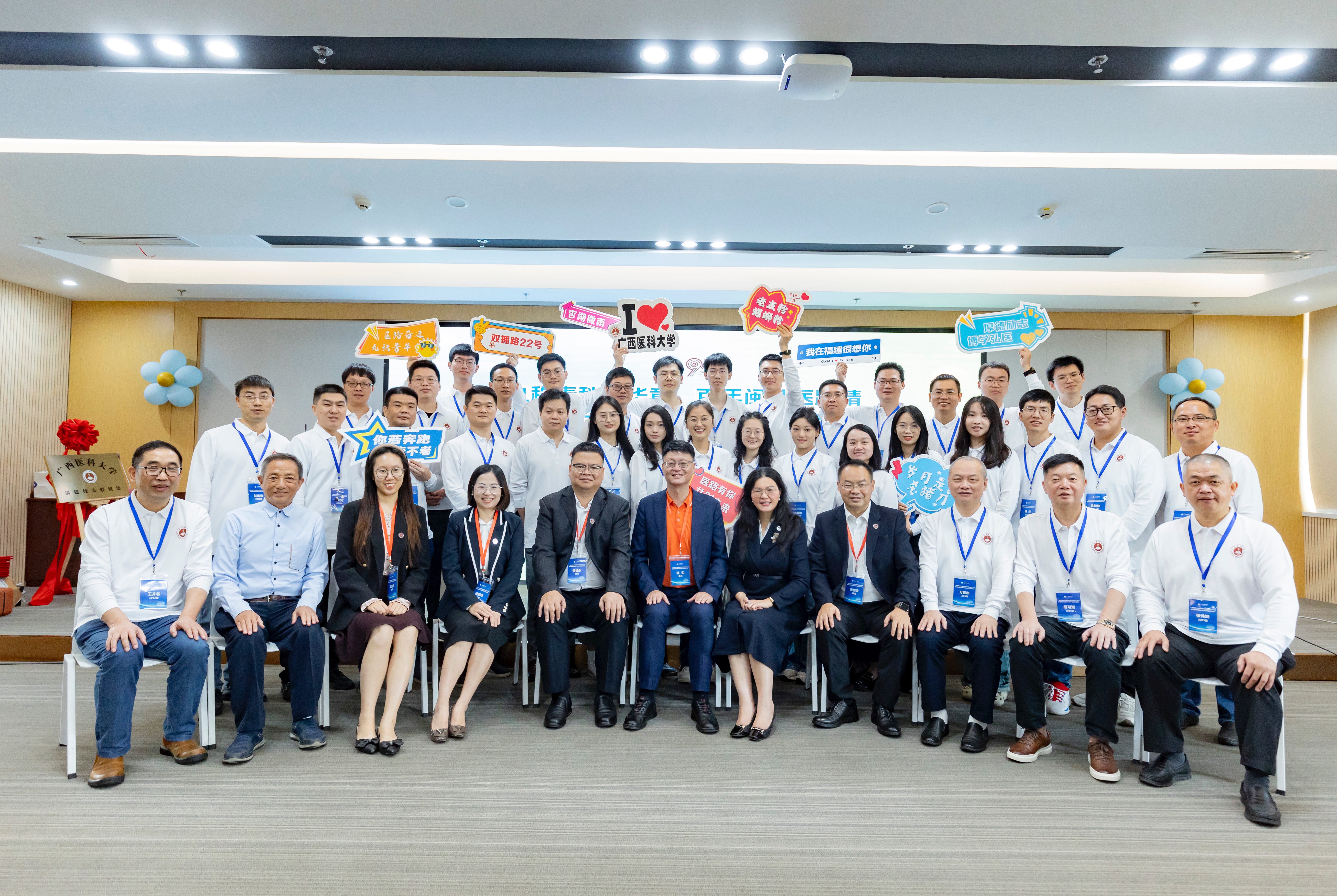 原广西医科大学副校长(挂职)林实代表福建校友对母校代表团一行表示热烈欢迎,对为筹建工作给予精心指导、大力支持、积极参与的母校有关部门、孟超肝胆医院和全体校友表示衷心感谢,对母校90周年华诞致以真挚祝福。他表示,广西医科大学福建校友联络处的成立,不仅是一个里程碑,更是广西医科大学与福建地区深情厚谊的见证。多年以来,闽桂两地始终惺惺相惜,携手不离,共同的发展纽带早已生根发芽,终于在今日的成立大会上开花结果。追忆从前在广西医科大学与班子同事们团结奋进的岁月,他感慨在校岁月的美好,自己始终珍藏着十年前母校赠予的文化衫,并穿着它来到现场。从十年之前意义非凡的母校文化衫,到十年之后的福建校友联络处正式成立,十年厚谊,穿在身上,暖在心里,见证着在闽医大人十年如一日反哺母校的拳拳之心。
