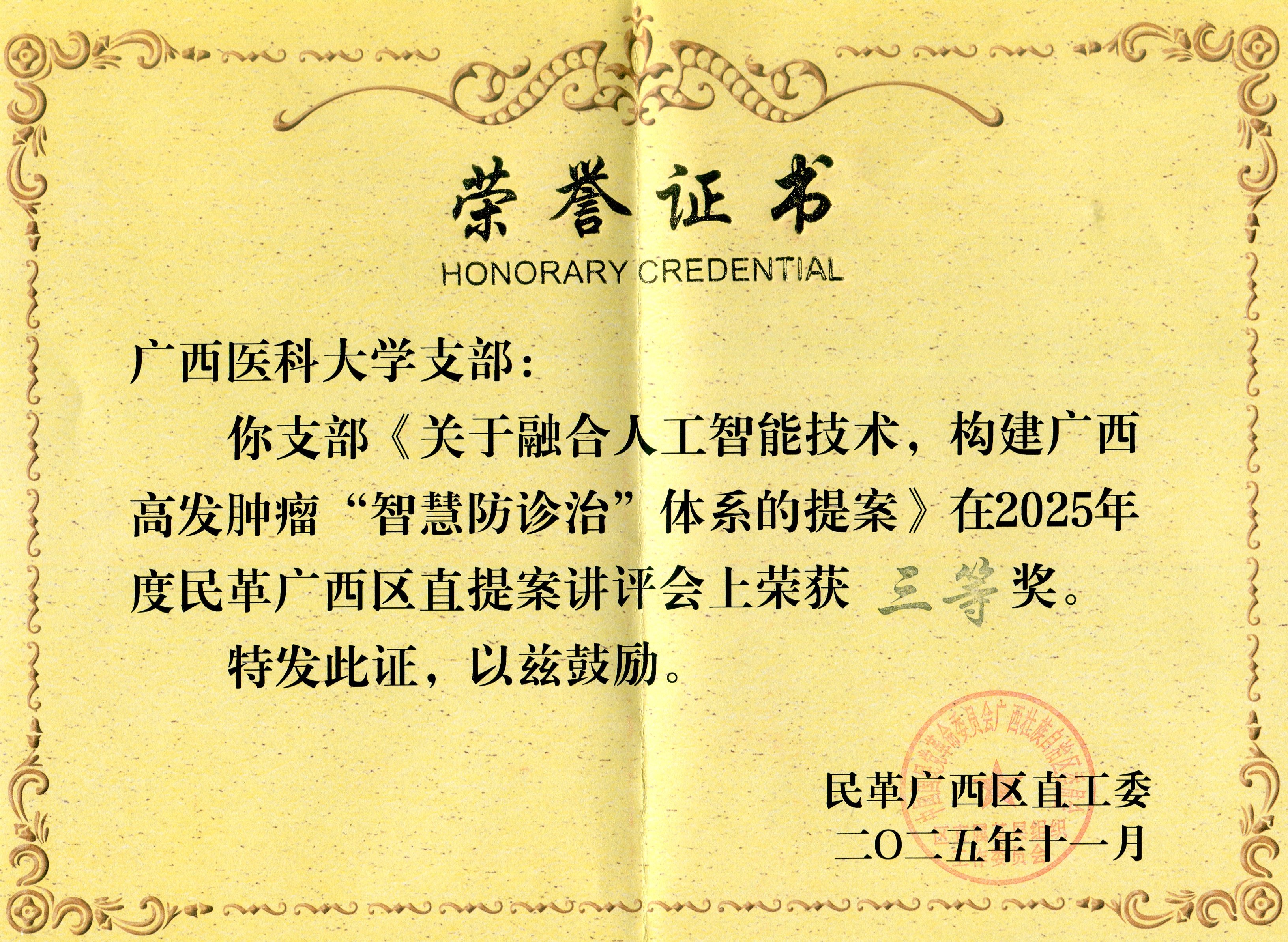 近日,民主党派中央、民主党派广西区委通报表彰了一批先进集体和先进个人。我校九三学社基层委荣获九三学社创建80周年“全国优秀基层组织”称号。民革支部提交的提案在2025年度民革广西区直提案讲评会上荣获三等奖。民建基层委主委姜岳明荣获民建广西社会服务工作先进个人称号。