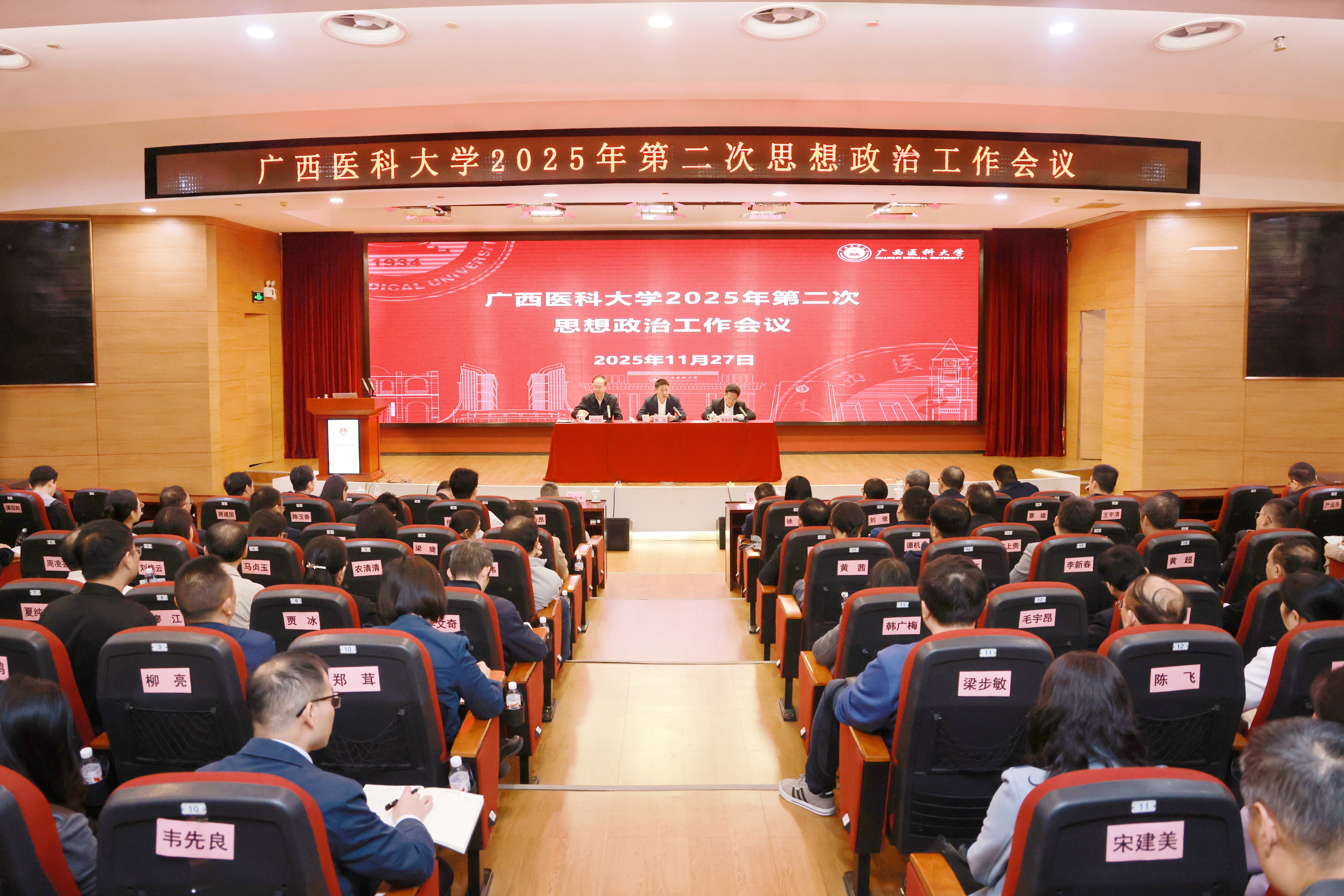 曾志羽就贯彻落实好本次会议精神提出要求,一是提高政治站位,在“举旗定向”上站得更高、看得更远,切实把思想和行动统一到党中央、自治区党委决策部署及学校党委工作要求上来,以坚定的政治自觉引领行动自觉。二要强化责任担当,在“守土尽责”上抓得更实、落得更细,着眼安全稳定和高质量发展深入分析研判,压实工作责任、细化落实举措,守好党建主阵地、育好医学接班人。三要坚持守正创新,在“提质增效”上谋得更准、做得更好,聚焦落实“立德树人”根本,紧密结合新时代思政工作规律和师生思想特点,持续健全“思想引领+学业帮扶+就业指导+心理疏导”育人体系,培养更多可堪大任的人民健康守护者、社会主义建设者和接班人。