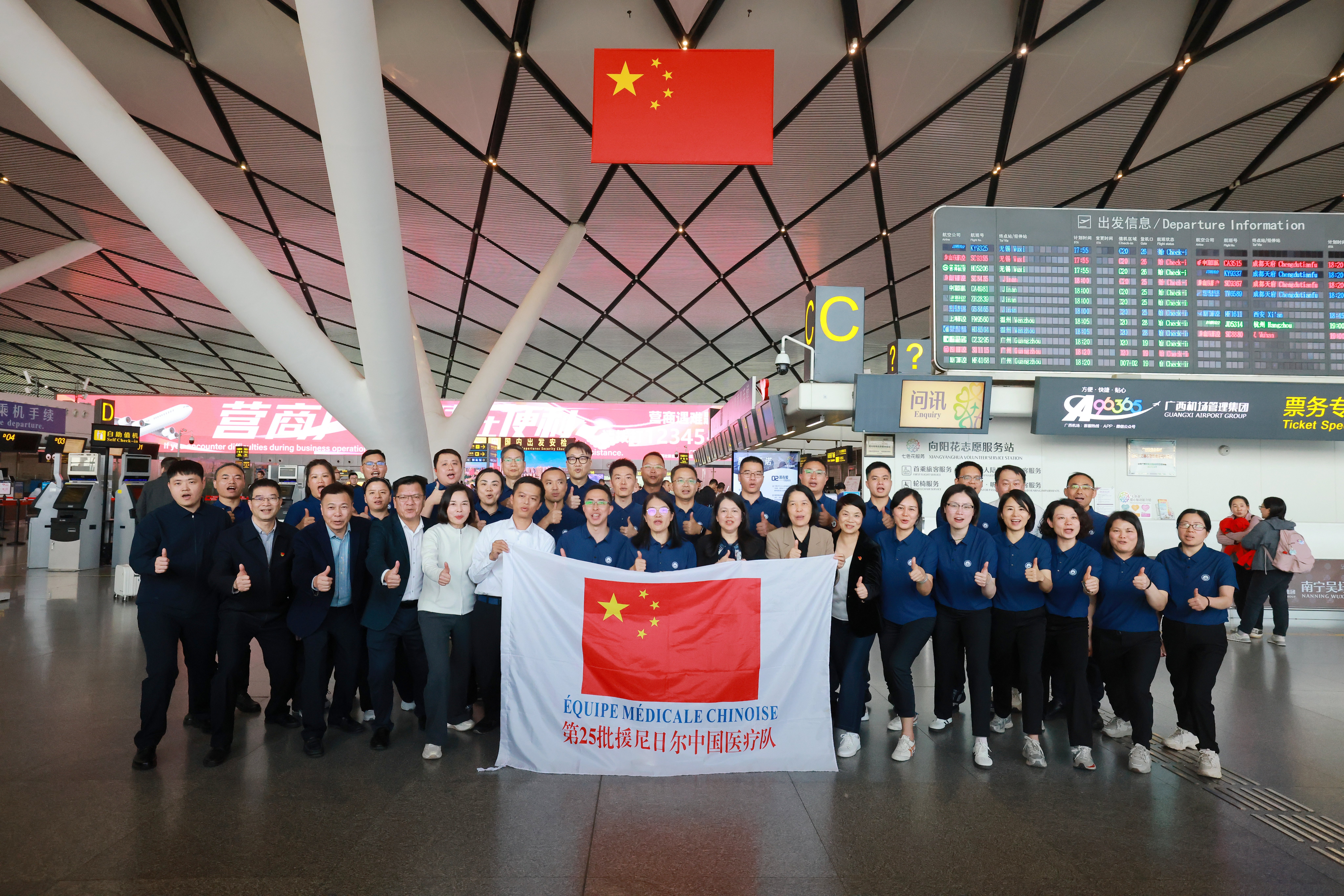 此次派出的第25批援尼日尔医疗队由广西医科大学及其附属医院整建制组建,涵盖心血管内科(心脏介入)、创伤外科、眼科、麻醉科、中医针灸、护理、医技等近20个专业岗位,体系完整,配置精干,启程远赴非洲执行为期一年半的援外医疗任务。这是广西首次由高等医学院校整体承派援非医疗队,是广西优化援外医疗工作机制、探索“整建制”派出模式的最新成果,标志着广西援外医疗资源整合与组织模式迈上新台阶。