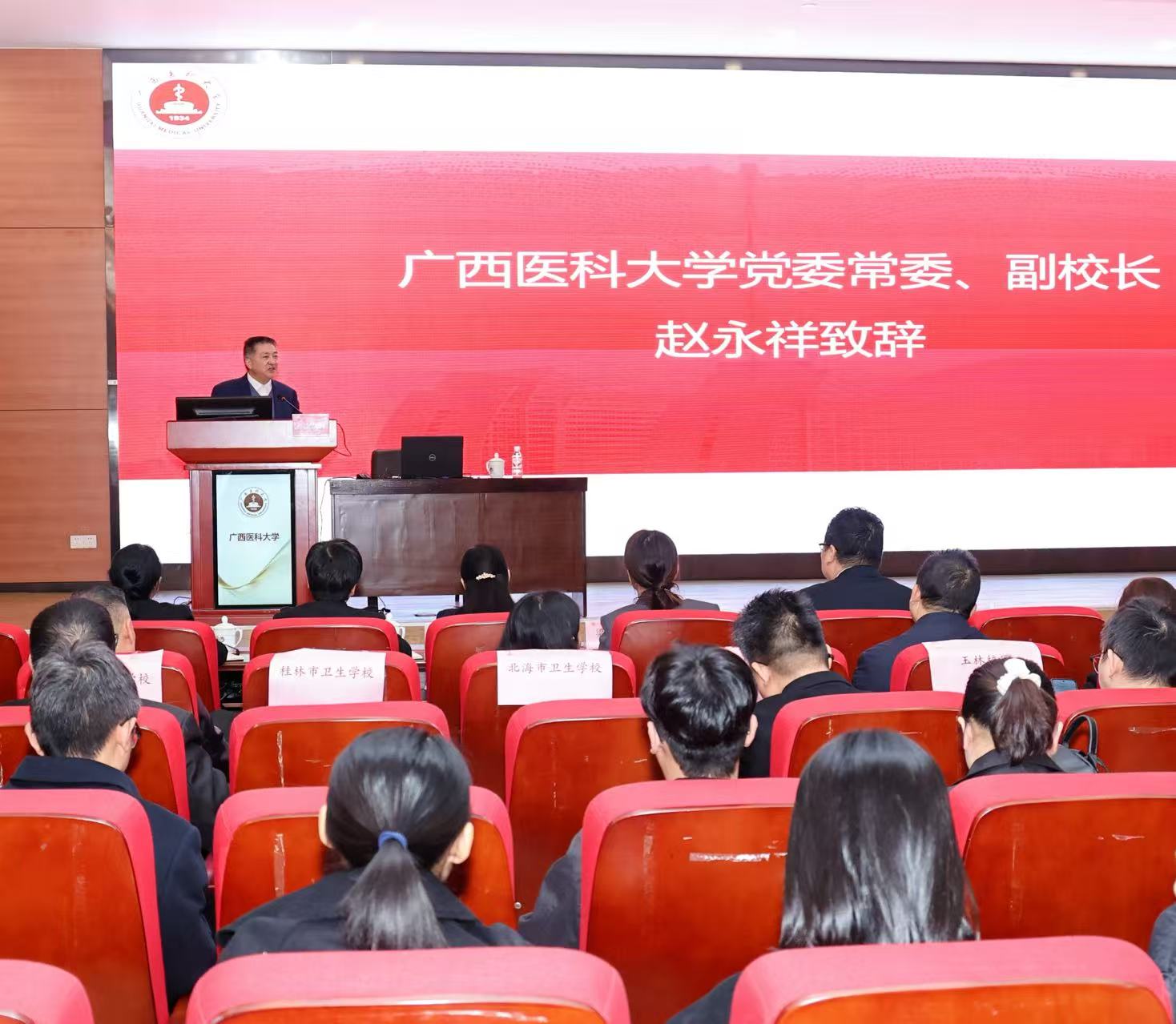 为进一步夯实高职教育办学根基,提升高职教学单位干部履职能力,表彰先进典型,凝聚发展合力。12月15日,2025年广西医科大学高职教育教学单位干部培训暨总结表彰会在校本部卓越楼21楼报告厅召开。学校党委书记陈川出席会议并作题为《做最好的中层》专题授课,副校长赵永祥致辞,高职院副院长林展主持会议。