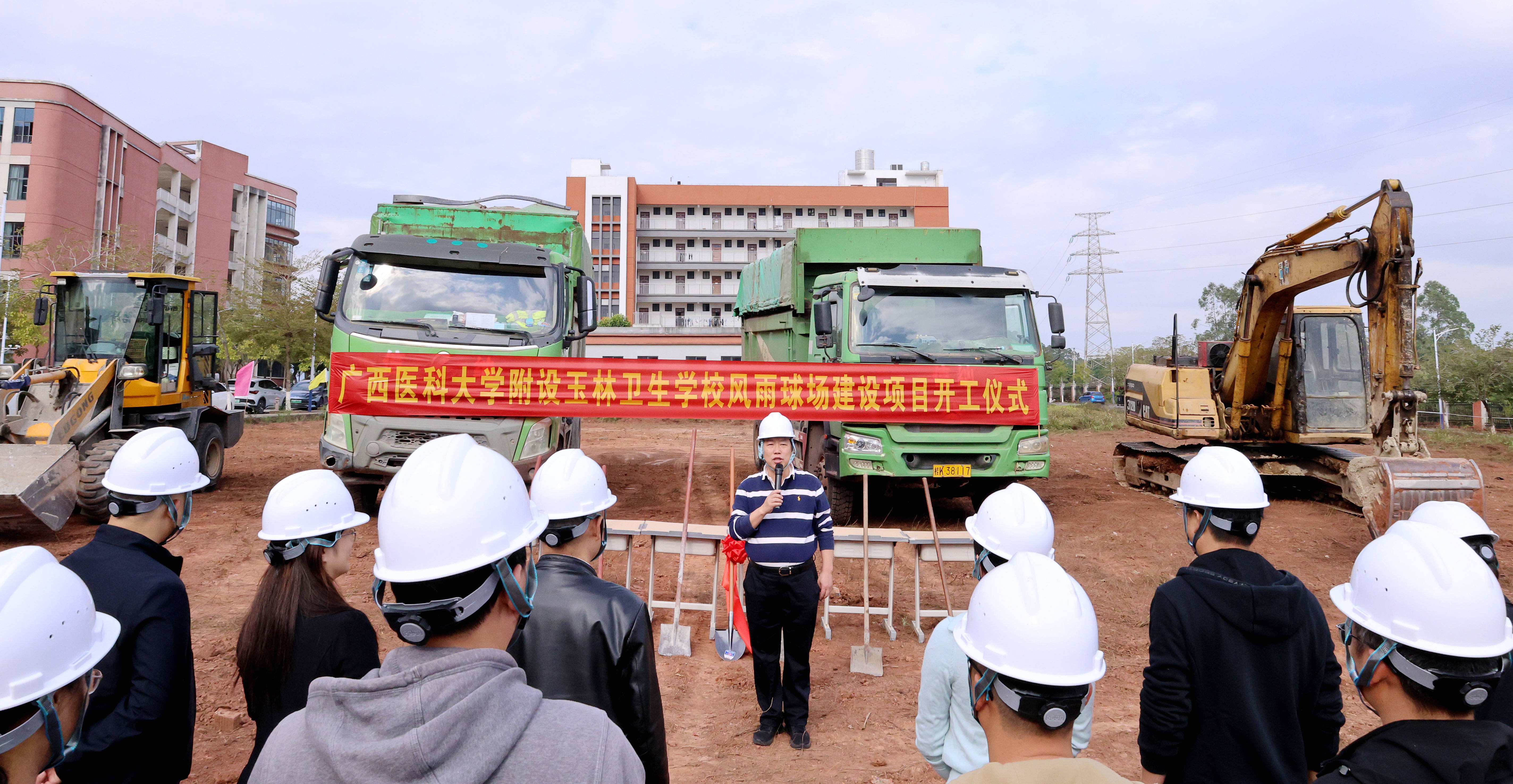 12月16日, 广西医科大学附设玉林卫生学校风雨球场开工仪式在玉林校区举行。学校副校长陈俊强出席,玉林校区全体领导班子成员、教职工代表,盘达建设工程集团有限公司代表和工作人员等50余人参加。仪式由玉林校区、附设玉林卫生学校党委书记苏上贵主持。
