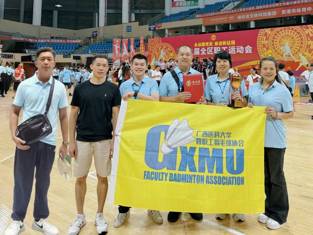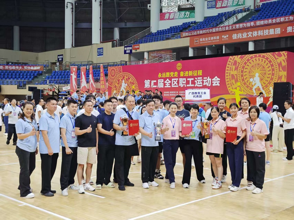 9月21日至23日,第二届“永远跟党走 奋进新征程”全区职工运动会在贵港市举行,羽毛球混合团体赛作为重要赛项吸引了40支精英队伍参赛。由我校骨干教师与全区教育系统羽毛球精英共同组成的自治区教育工会代表队,经过多轮激烈角逐,闯入四强,获得赛事三等奖。