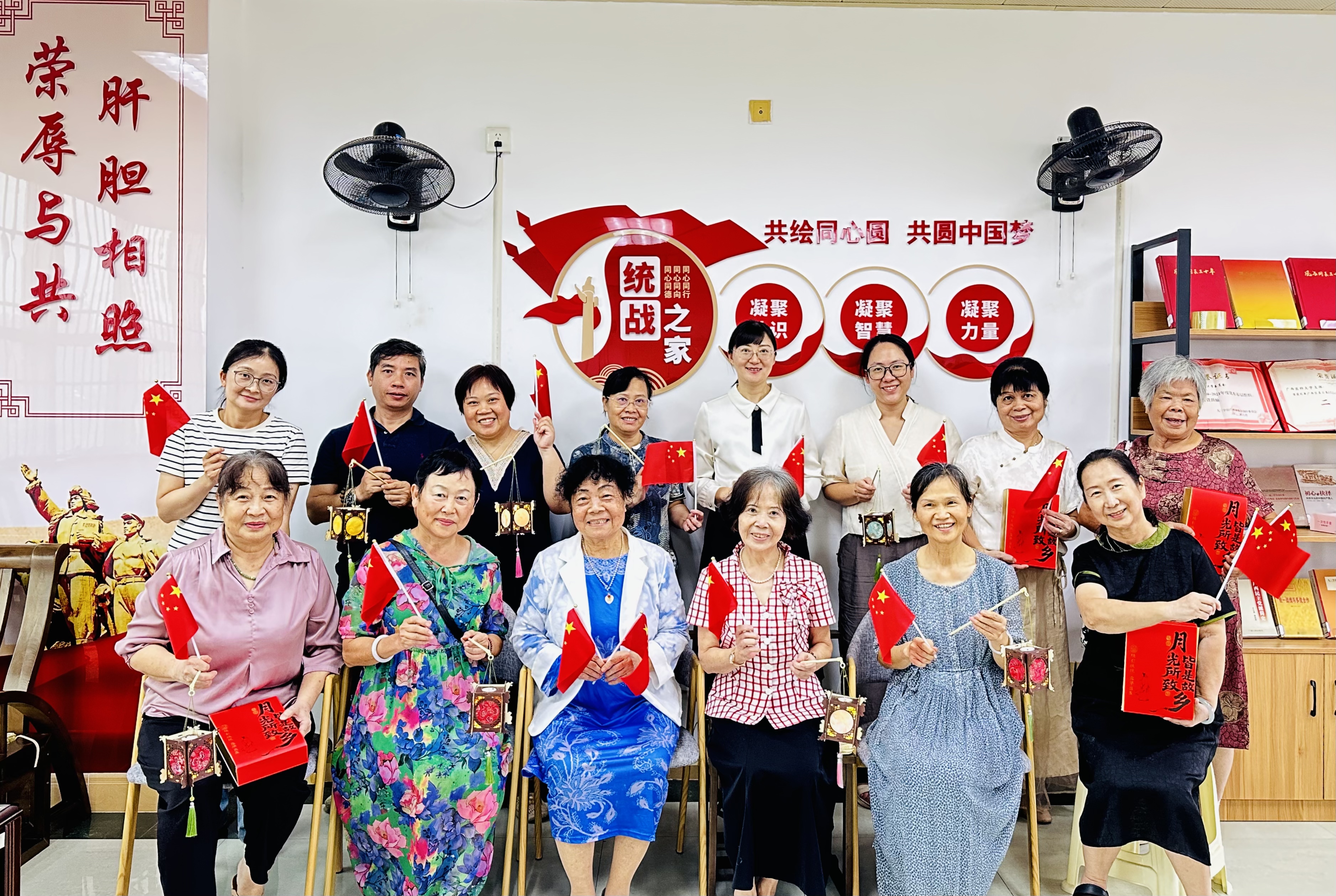 在传统文化体验环节,代表们以传统文化为纽带,动手制作冰皮月饼,巧制国风花灯。一个个精致可爱的冰皮月饼和一盏盏国风花灯寓意团圆美好。活动现场欢声笑语不断,大家在感受中华优秀传统文化中凝聚深厚的家国情怀。活动最后,大家手持国旗歌唱和祝福祖国。