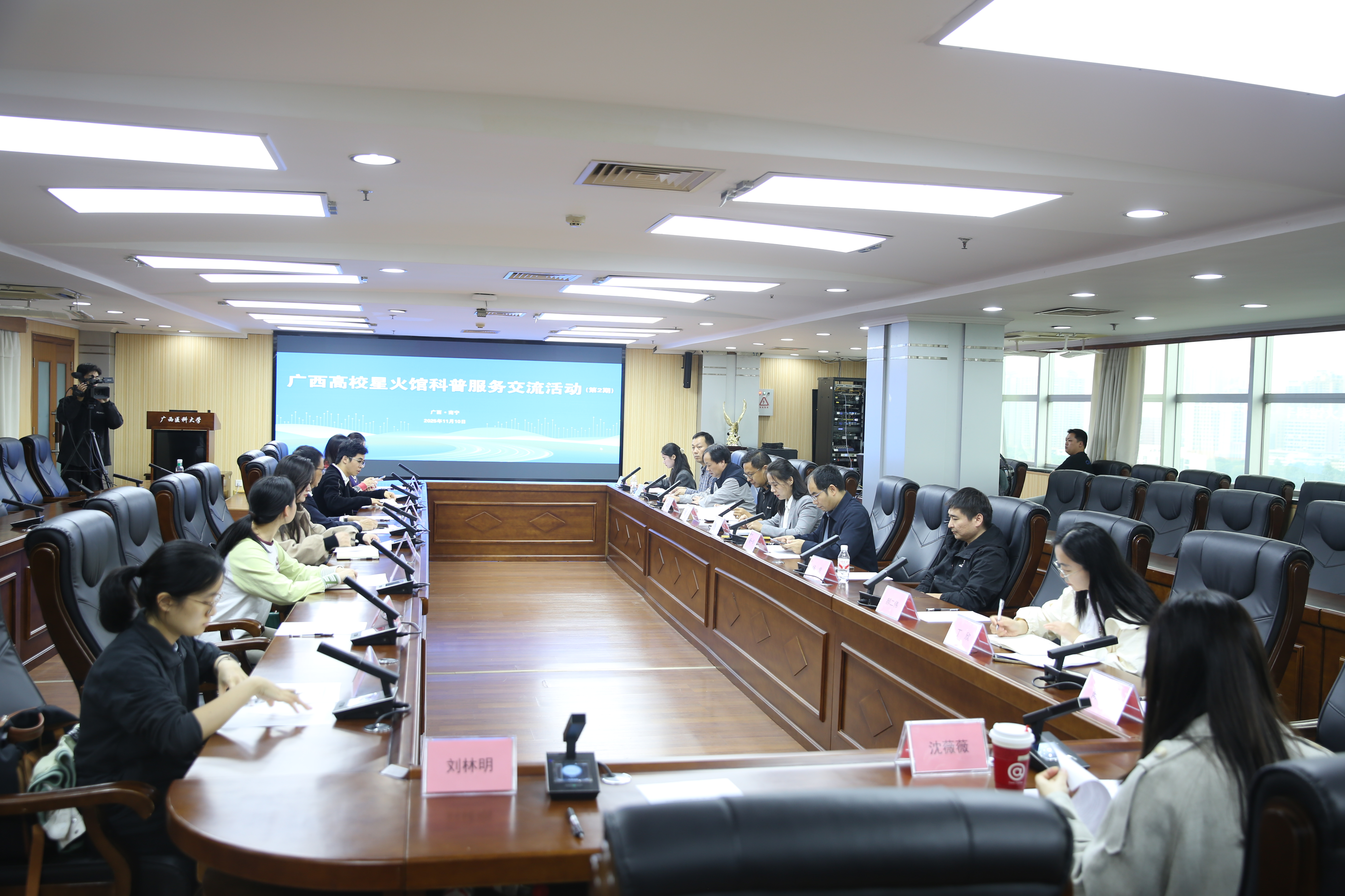 2025年11月10日,全区高校星火馆科普服务交流活动(第二期)在广西医科大学举行。本次活动由广西科学技术普及传播中心主办,广西医科大学科协承办,采用“线上+线下”方式进行。会议由广西科普传播中心副主任周娉婷主持。全区各高校科协负责人及星火馆教师参与交流。