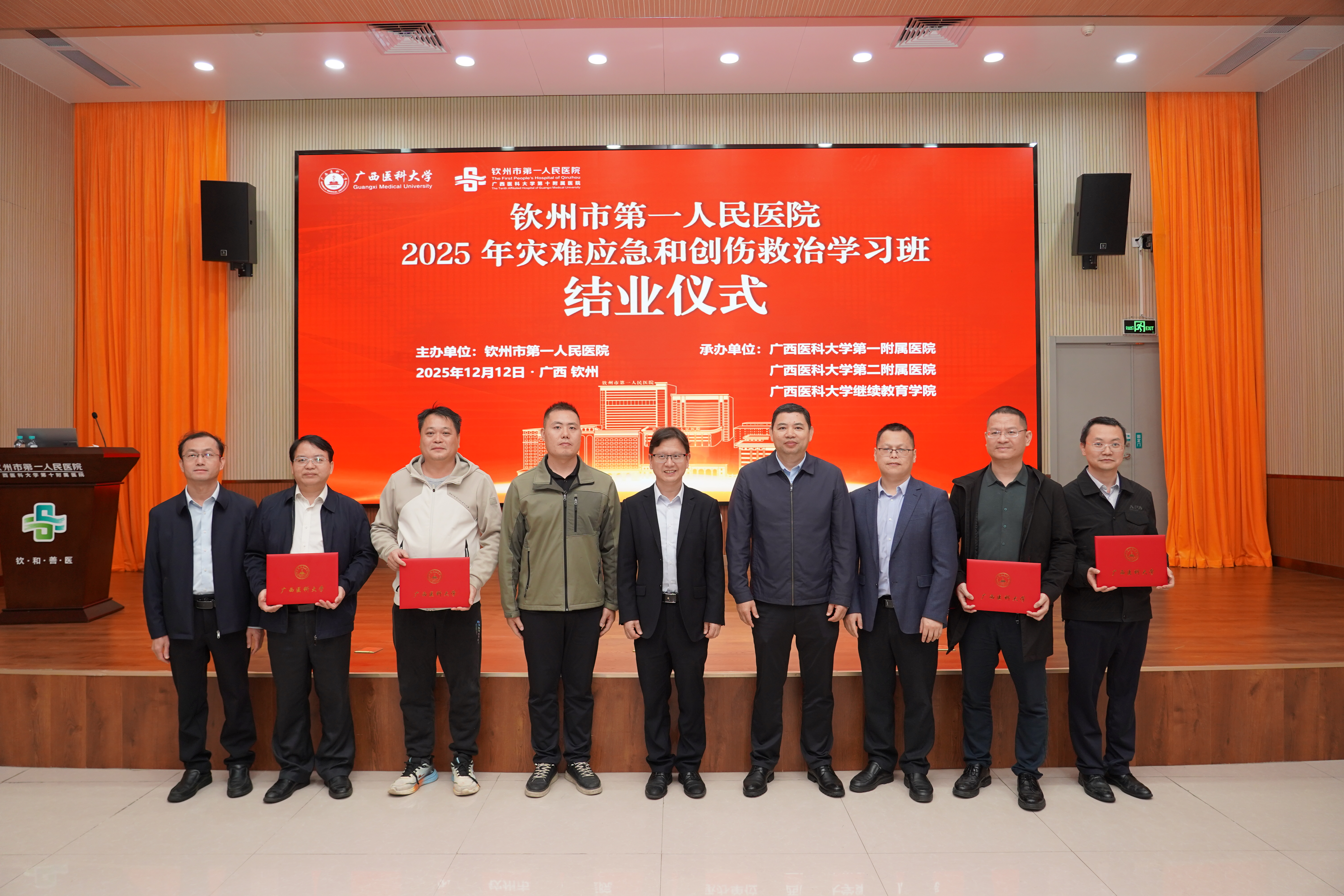 12月12日至13日,由我校第一附属医院、第二附属医院以及继续教育学院联合承办的钦州市第一人民医院2025年灾难应急和创伤救治学习班举办。我校第二附属医院院长韦庆军,钦州市第一人民医院党委副书记、副院长黄国盛,继续教育学院副院长韦先良等出席开班仪式并致辞。学习班以“线上+线下”融合模式开展,共70余人参加。