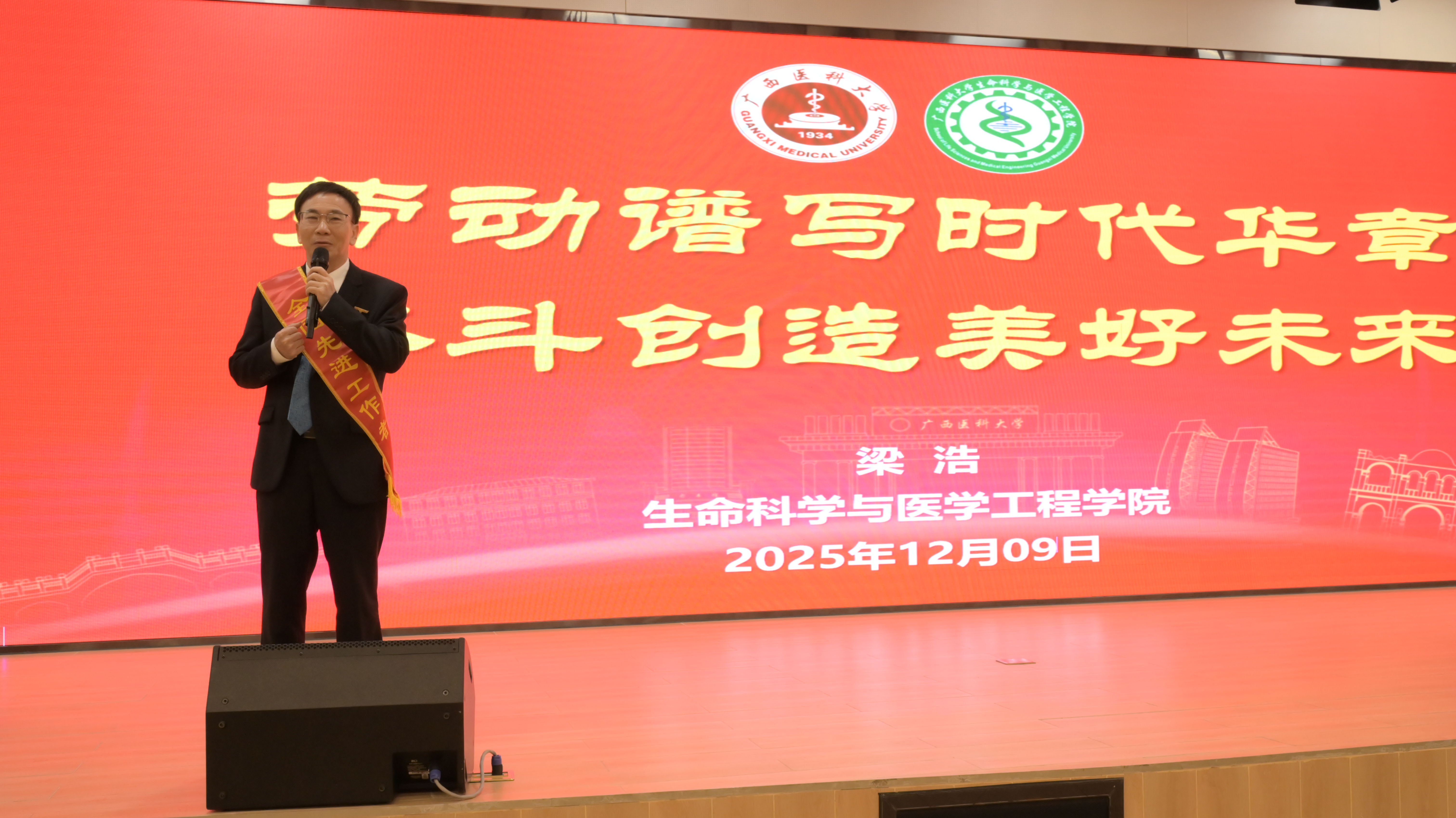 梁浩以《劳动谱写时代华章 奋斗创造美好未来》为题,为师生讲授了一堂鲜活生动的科学思政课。他分享了参加全国总工会成立100周年庆祝大会暨全国劳动模范和先进工作者表彰大会的珍贵经历,回顾了作为全国劳模代表在今年国庆劳模联谊会上的发言感悟。随后,梁浩以院长、教师、学长三重身份,结合自身从我校预防医学专业启程,深耕新发高发传染病防控、生物大数据与人工智能领域的科研奋斗历程,寄语同学们要在医工赛道上勇敢逐梦,将个人理想融入时代发展大局,在大学期间要勇毅前行,脚踏实地攻坚克难。
