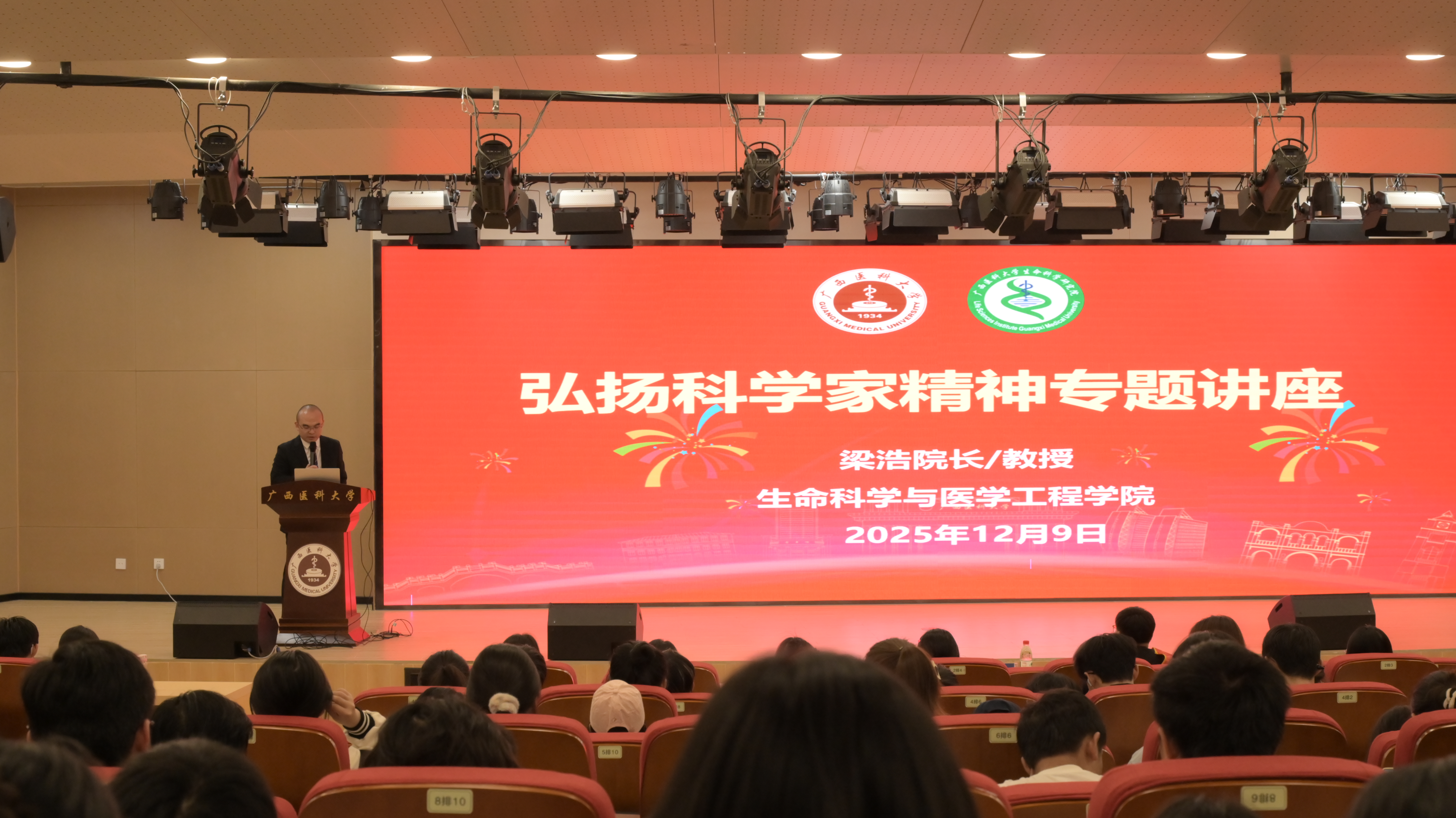 为厚植科研情怀,传承科学家精神,引导青年学子立大志、明大德、成大才、担大任,12月9日晚,生命科学与医学工程学院在武鸣校区图书馆合一报告厅举行弘扬科学家精神专题讲座。全国先进工作者、学院院长梁浩教授应邀担任主讲嘉宾,学院全体本科生(武鸣校区)参会学习,学院党委副书记宋方茗主持讲座。
