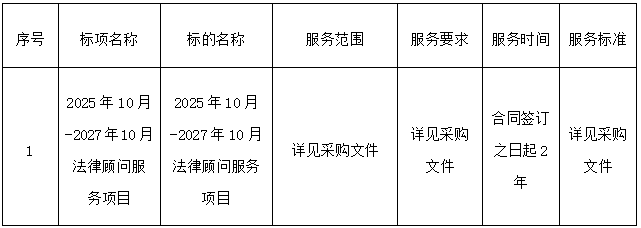 二、项目名称:2025年10月-2027年10月法律顾问服务项目