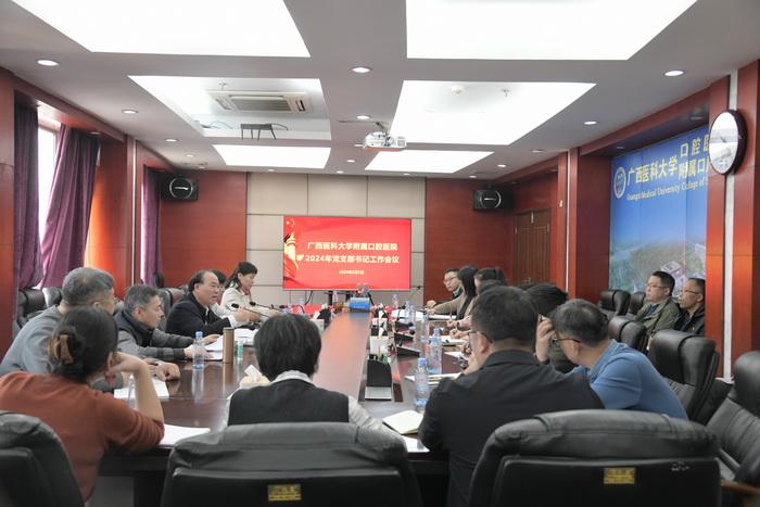 2024年2月1日下午,附属口腔医院召开2024年党支部书记工作会议,医院党委书记覃远汉,副书记李松峰、邝海、陶人川以及全体党支部书记,党办、组织人事科、监察室部门负责人和专职组织员参会。会议由陶人川主持。