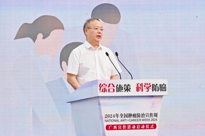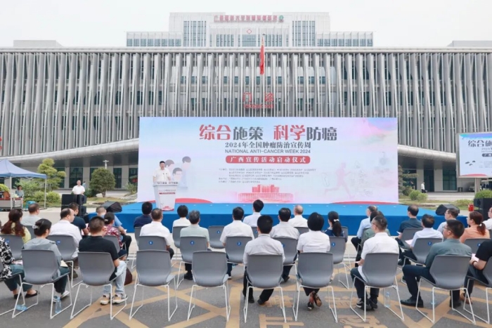 自治区卫生健康委二级巡视员陈松;中国抗癌协会继教及科技服务部部长阎昭;广西医科大学党委常委、副校长,广西抗癌协会理事长,广西医科大学附属肿瘤医院院长唐卫中出席启动仪式并讲话。自治区发展改革委、自治区教育厅、自治区科技厅、自治区民政厅、自治区生态环境厅、自治区农业农村厅、自治区市场监管局、自治区医保局、自治区中医药局、自治区药监局、自治区疾控局、国家金融监督管理总局广西监管局有关负责同志,驻邕区直医疗卫生机构分管领导、肿瘤防治科室负责人,广西医科大学附属肿瘤医院院领导和职工、肿瘤学专业研究生,以及周边社区群众们参加启动仪式。启动活动以现场和线上直播形式开展,线上参加活动的有各市、县(市、区)卫生健康行政部门分管领导和相关科室负责同志,以及相关医疗卫生机构的分管领导、负责科室相关人员。