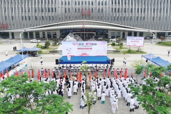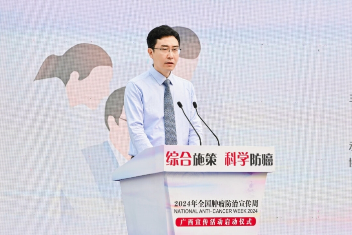 为全面深入贯彻党的二十大精神,认真落实党中央、国务院对癌症防治工作的决策部署,提升全区防癌抗癌能力,高质量推进健康广西建设,4月15日上午,由自治区卫生健康委等15个部门主办,广西癌症中心(广西医科大学附属肿瘤医院)、广西抗癌协会承办,广西医科大学、自治区科学技术协会协办的第30届全国肿瘤防治宣传周广西宣传活动启动仪式在广西医科大学附属肿瘤医院五象院区举行。