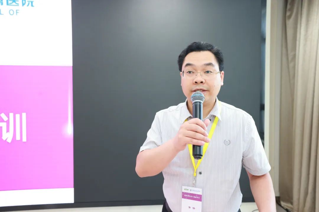 他表示,经过前面三期的培训,大家初步掌握了临床研究的思路、特点和方法。希望学员们带着临床问题参加本期培训,学以致用凝练并解决临床专业问题,把临床问题、研究设想转化为科学严谨的研究方案并实施,努力为临床实践提供高质量的依据,助推医学科技和医院高质量发展。