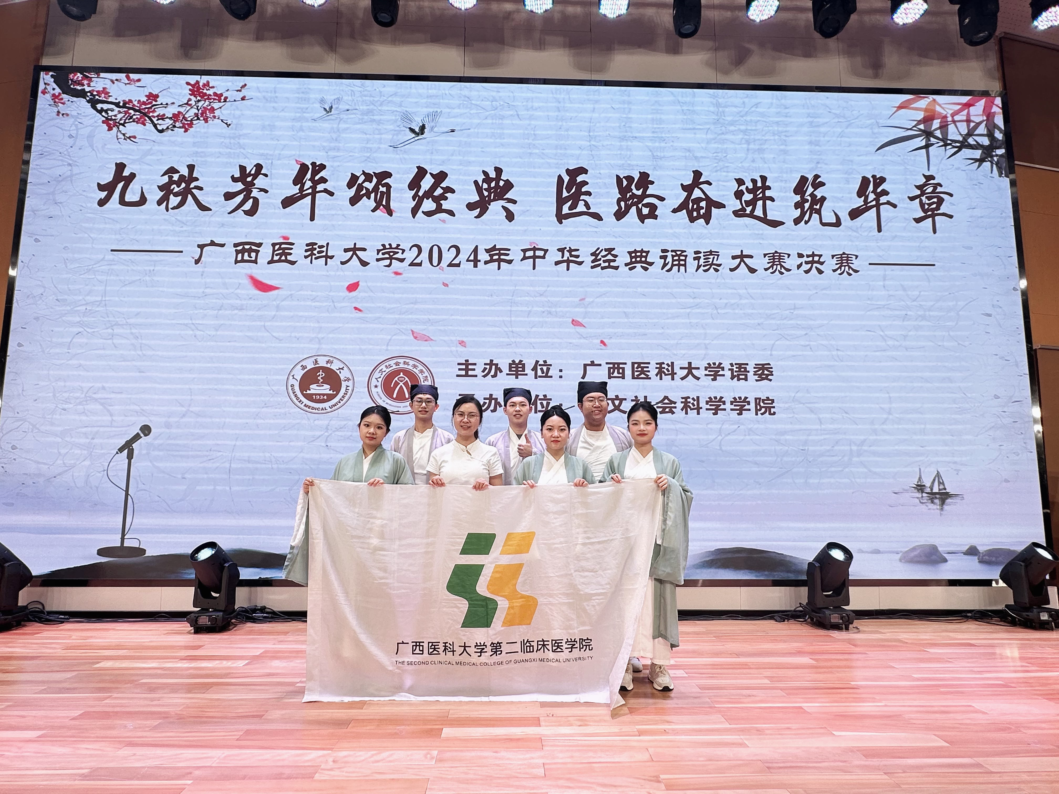 诵读中华经典,弘扬中国精神。6月6日,由广西医科大学语委主办、人文社会科学学院承办的中华经典诵读大赛决赛在武鸣校区图书馆顺利落下帷幕,在激烈的竞争中,二附院个人组作品《阿房宫赋》斩获个人组一等奖,集体组作品《赤壁赋》斩获集体组二等奖。