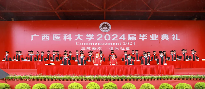 6月25日上午,广西医科大学2024届毕业典礼在学校田径场隆重举行,广西医科大学党委书记黄照权、校长曾志羽等全体校领导,学校各职能部处领导,武鸣临床医学院党委书记朱小东,副院长陈茂伟、赵伟及全体辅导员参加本次毕业典礼。武鸣临学院6名2024届硕士研究生圆满完成学业并顺利毕业。
