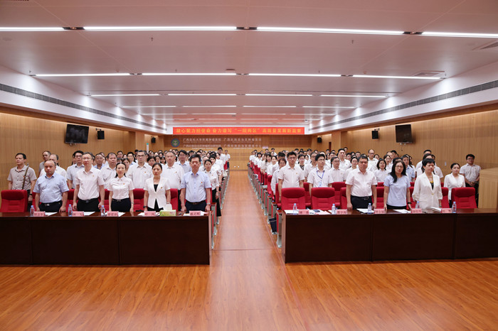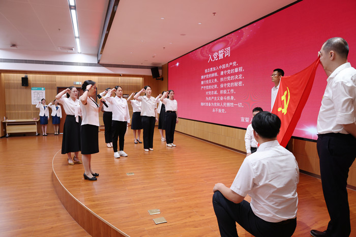 在叶凤带领下,党员们面向党旗,新党员进行入党宣誓,老党员重温入党誓词,集体庄严承诺对党忠诚,砥砺入党初心,坚定理想信念。本次表彰大会在《国际歌》声中闭幕。大会为医院高质量发展注入了强大的精神动力,全院干部职工将以先进典型为榜样,在新时代的征程中,继续书写辉煌篇章,为党的各项事业发展和健康中国、健康广西建设贡献力量!