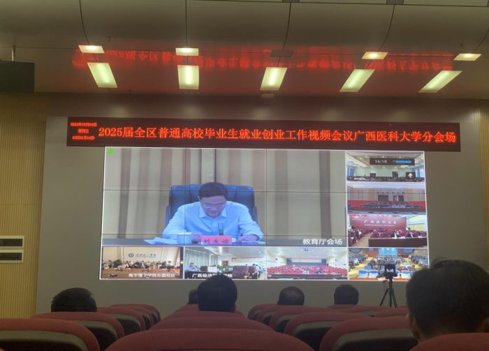 2024年12月4日,二附院党委书记罗杰峰,党委副书记黄惠桥及负责2025届毕业生就业工作的辅导员在学校参加2025届全区普通高校毕业生就业创业工作视频会议,认真学习有关高校的就业创业先进做法经验和自治区教育厅、人社厅、工信厅领导讲话精神,缪力同心促进毕业生高质量充分就业。