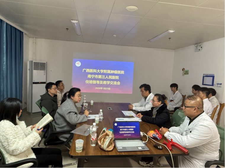 为全面提升住院医师规范化培训(以下简称“住培”)协同工作的规范化与同质化水平,加强单位间交流协作,系统推进2026年住培教学工作,近期,由附属肿瘤医院分管院领导带队,教务部及相关专业基地负责人共同组成教学交流组,前往协同单位广西医科大学附属武鸣医院、广西壮族自治区妇幼保健院和南宁市第三人民医院进行住培教学专题交流活动。