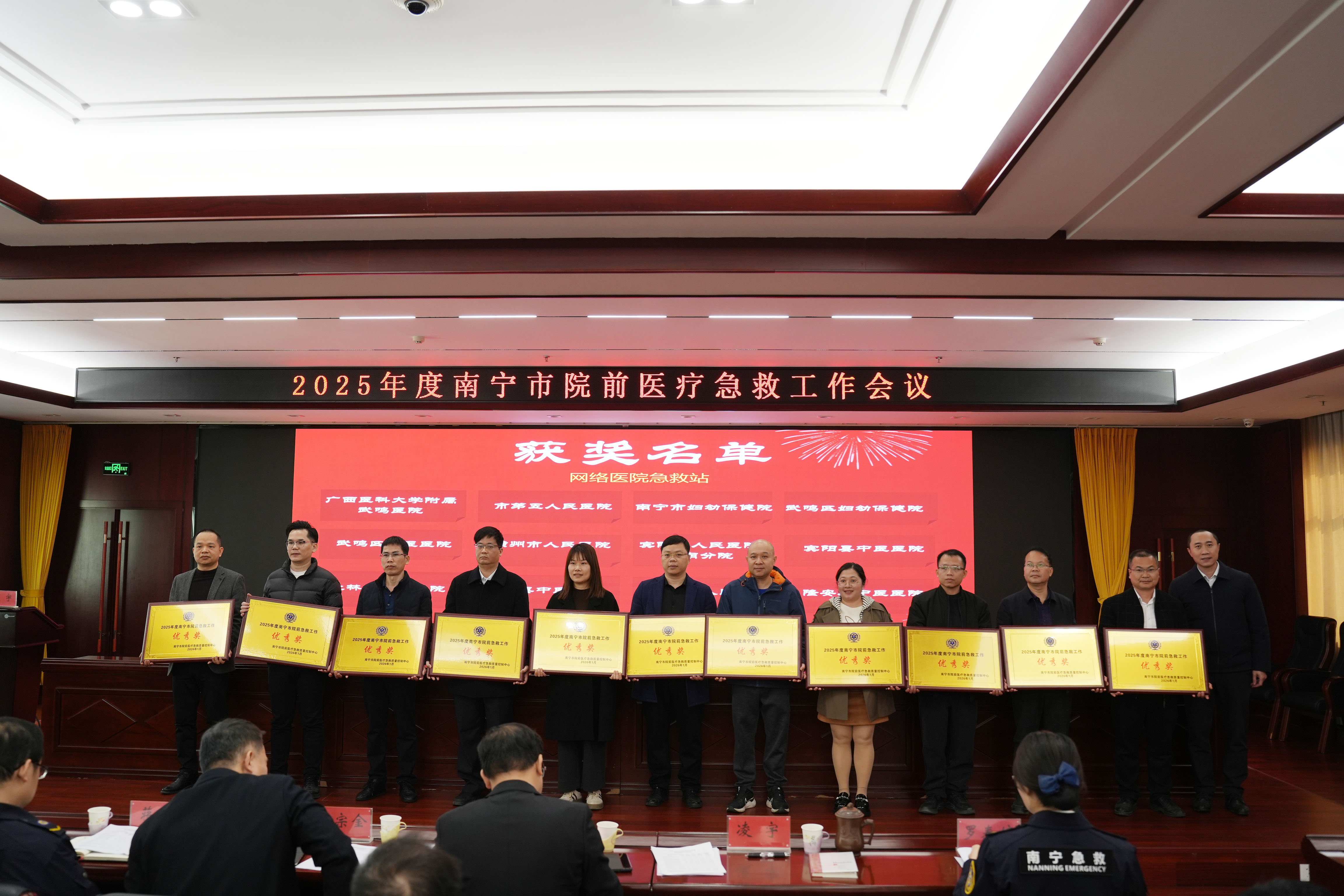 2月3日,南宁市卫生健康委员会召开全市院前医疗急救工作会议,对2025年度院前急救工作表现突出的单位进行表彰。附属武鸣医院凭借在急救响应速度、流程规范管理及救治成效方面的卓越表现,荣获“2025年度南宁市院前急救工作优秀奖”。医院院长张剑锋参加会议,医务部部长韦可聪代表医院在大会作经验分享,系统介绍医院在院前急救领域的创新实践成果。