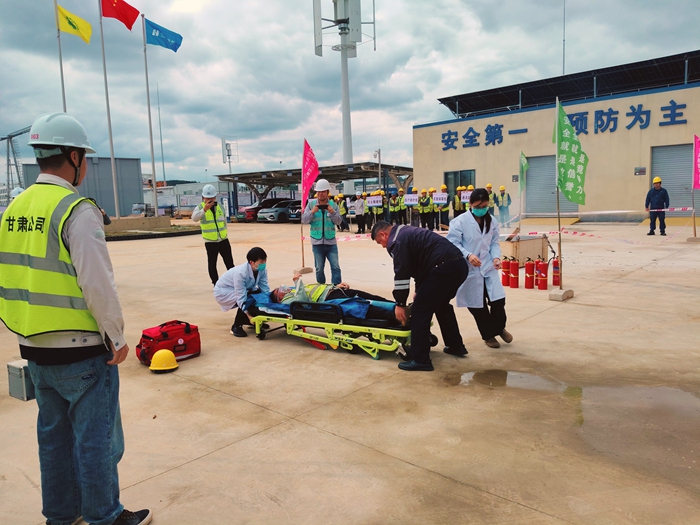 演练在南宁市西乡塘区双定镇储能二期项目升压站施工现场开展,模拟因违规吸烟引发火灾,造成人员烧伤并吸入有害气体昏迷的突发场景。演练过程中,党员医护人员作为现场医疗救援力量,与项目应急小组密切合作,按照应急预案流程开展伤情评估、紧急处置及安全转运演示,处置规范有序,为提升项目应急救援能力提供了专业支撑。