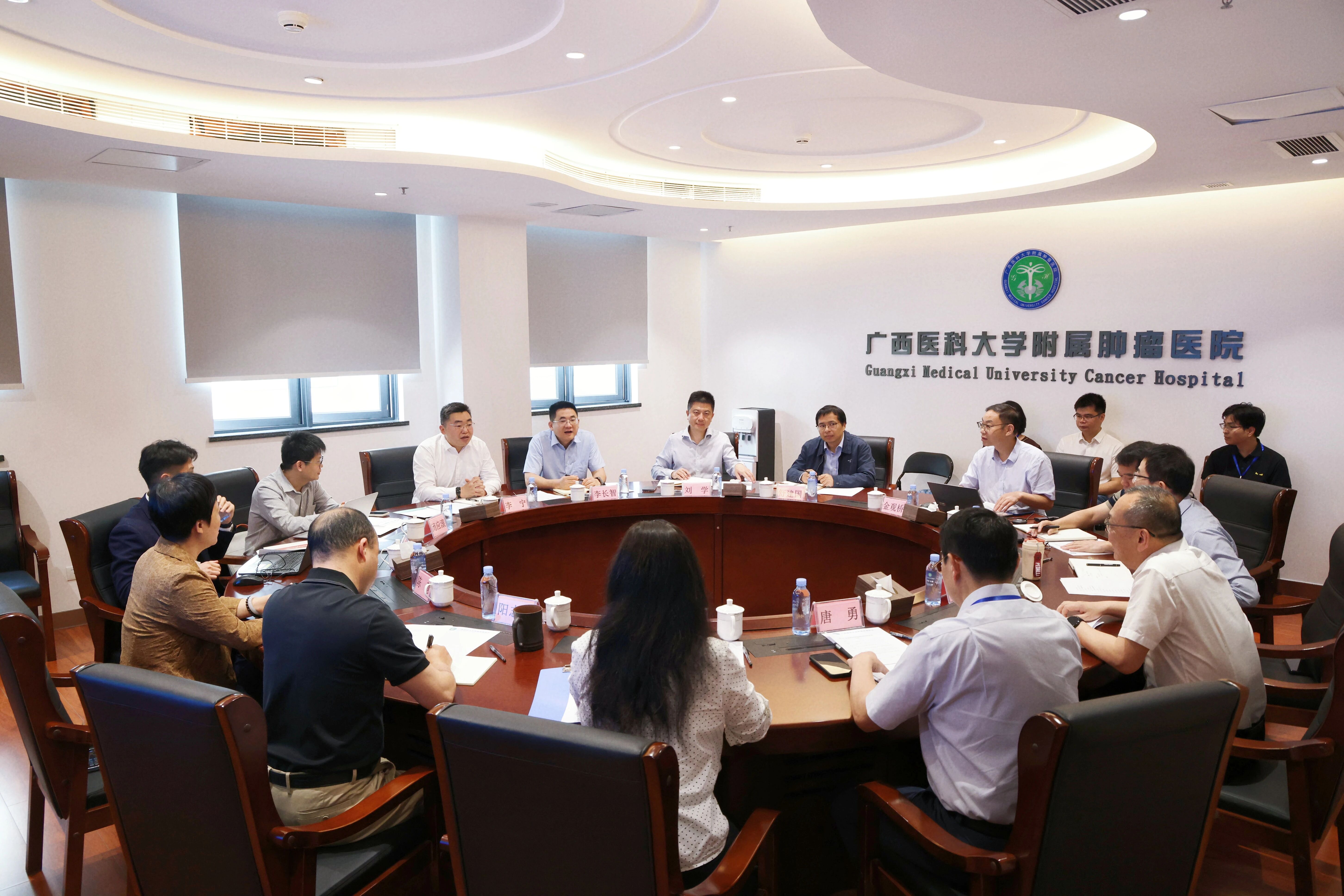 数字广西集团、云上广西网络科技有限公司相关负责人,以及医院医务科、科研科、信息中心、医学影像中心、放疗科等相关科室负责人参加调研座谈。