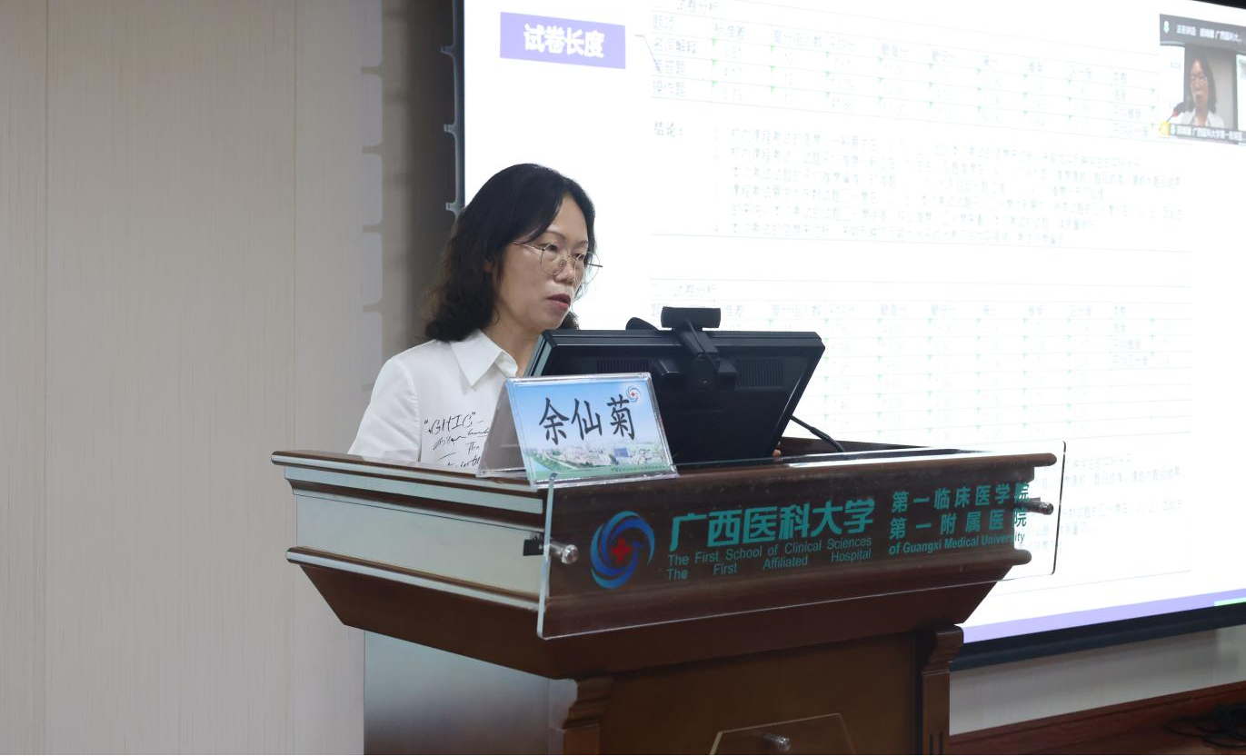 第一临床医学院教务部部长韦秋文作开班讲话。她强调,教学评价是保障医学人才培养质量的核心环节,命题质量与题库建设水平直接决定评价的科学性与有效性。本次培训旨在提高对教育评价理论逻辑的认识,加强命题规范,提升教师命题能力,为提高试题质量、助力教学打好基础。