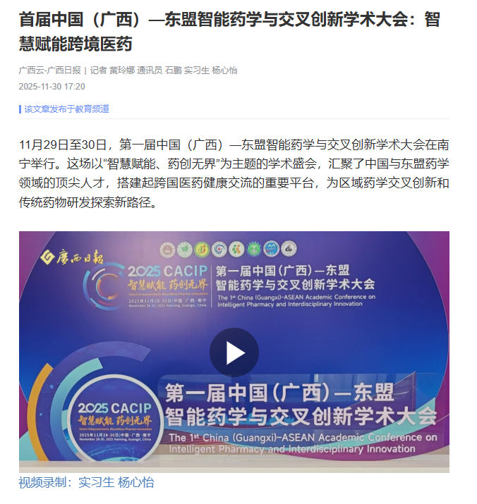 来源:人民网、光明日报、中国新闻网、广西日报、广西广播电视台 发布时间:2025-12-03 作者:药学院整理提供 校对:付玉敏 审核:林晓