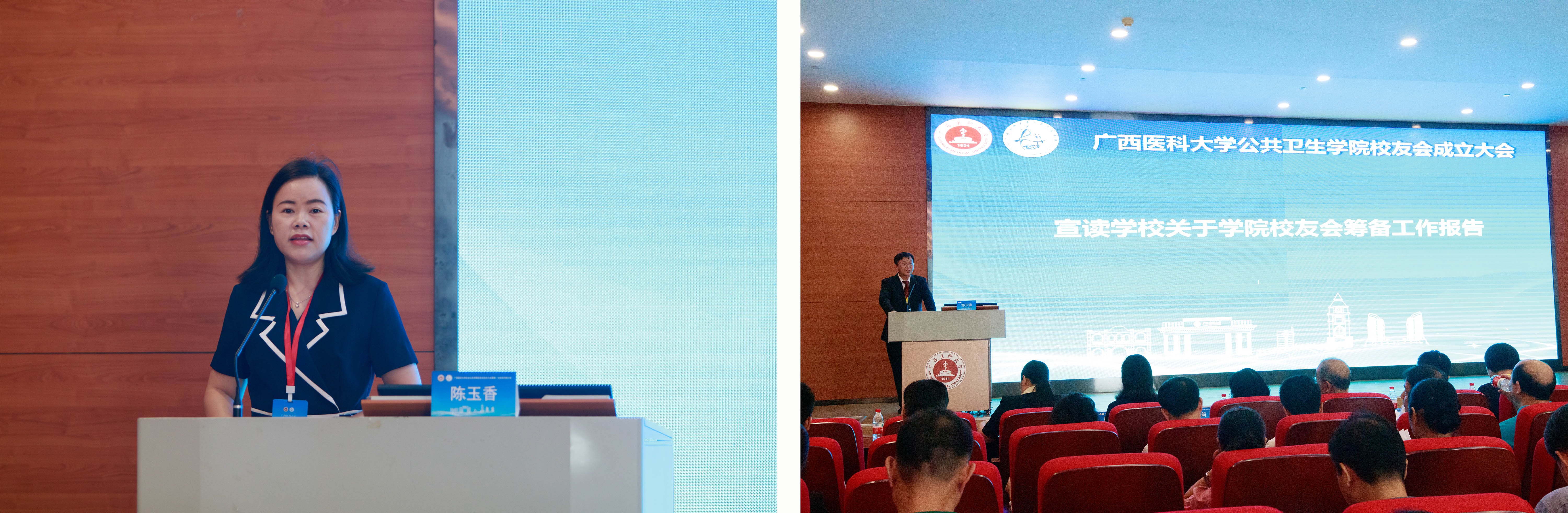 岁月流转母校情,感念校友恩情深。9月24日上午,广西医科大学公共卫生学院校友会成立大会暨第一次会员代表大会在南宁—校本部卓越楼21楼报告厅举行。学校校长、校友会会长曾志羽,校长办公室副主任、校友会秘书长陈玉香,公共卫生学院领导班子、历任学院领导出席会议,教师代表、历届毕业校友代表90余人参加会议。会议由公共卫生学院党委副书记唐凤主持。