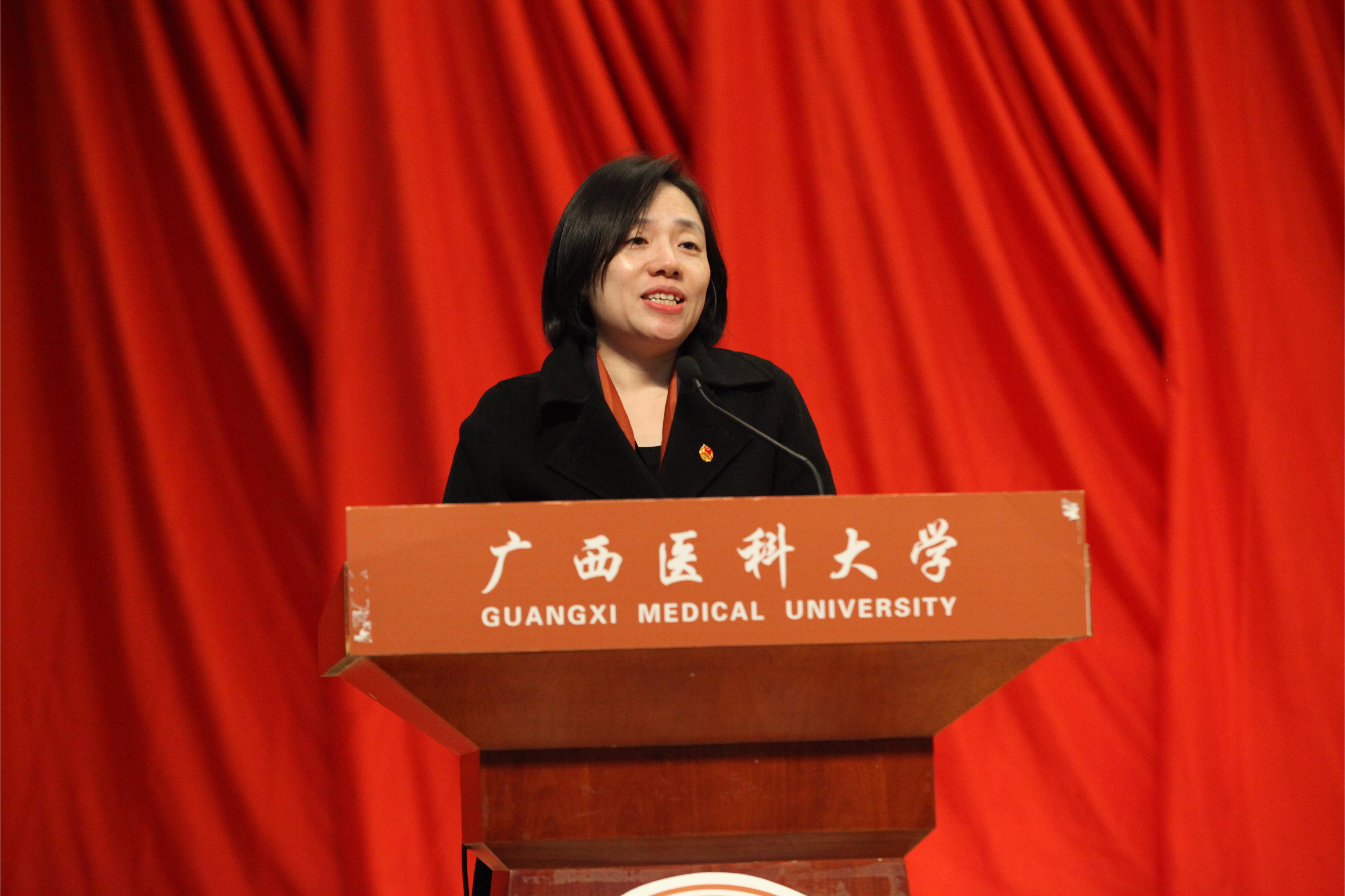 在大会开幕式上,共青团广西区委副书记左向蕾在讲话中高度评价了我校共青团在履行引领凝聚青年、组织动员青年、联系服务青年三项根本职责方面所做的大量成效卓著的工作,并代表共青团广西区委对医大共青团工作提出了四点希望:一是为党育人,着力加强团员青年思政引领和价值引领;二是挺膺担当,争做建设健康中国的生力军;三是扎根青年,充分发挥党联系青年的桥梁纽带作用;四是深化改革,严于管团治团。