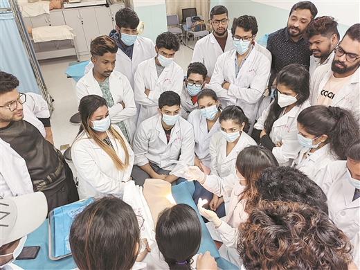 广西医科大学留学生在学习《临床技能学》妇科检查操作。(广西医科大学供图)