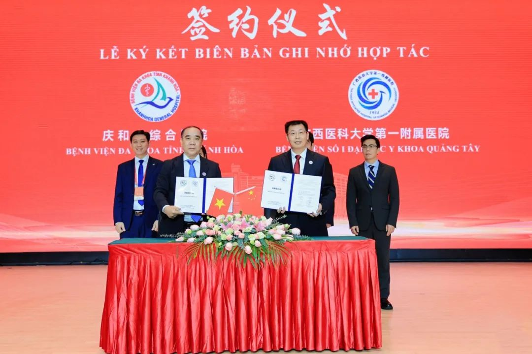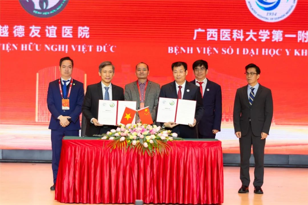 当天,广西医科大学第一附属医院与越南越德友谊医院、越南庆和省综合医院签署了协议,标志着医院在拓宽中国—东盟跨境医疗合作生态圈上迈出了坚实的一步。