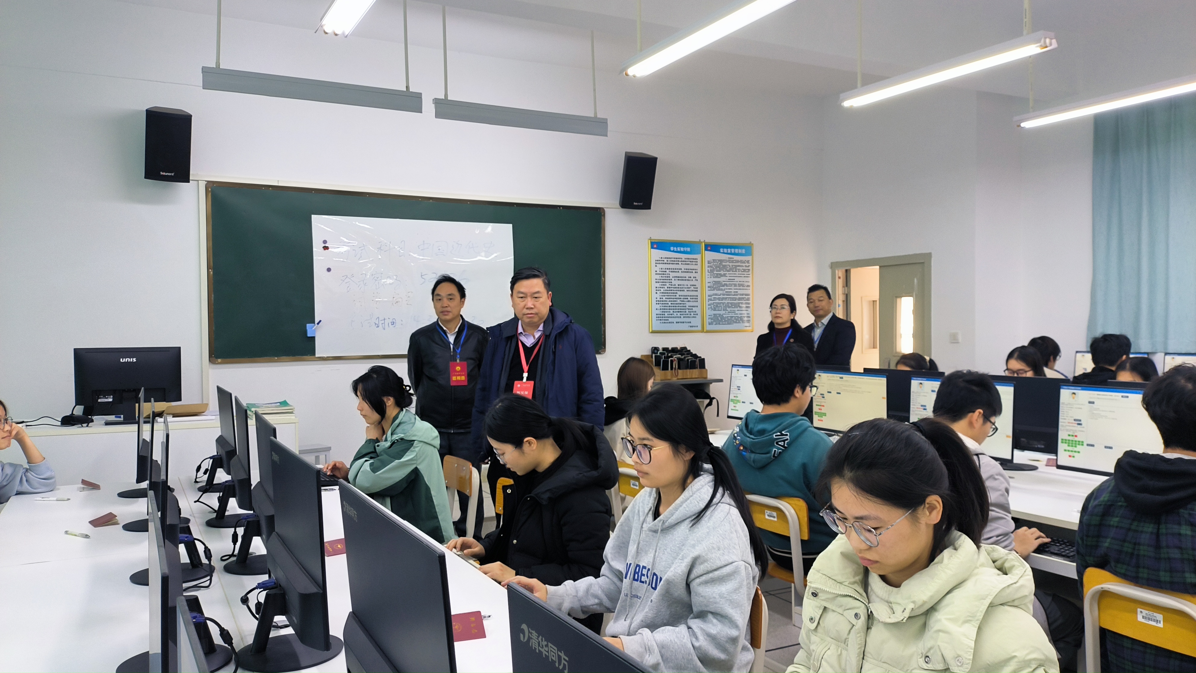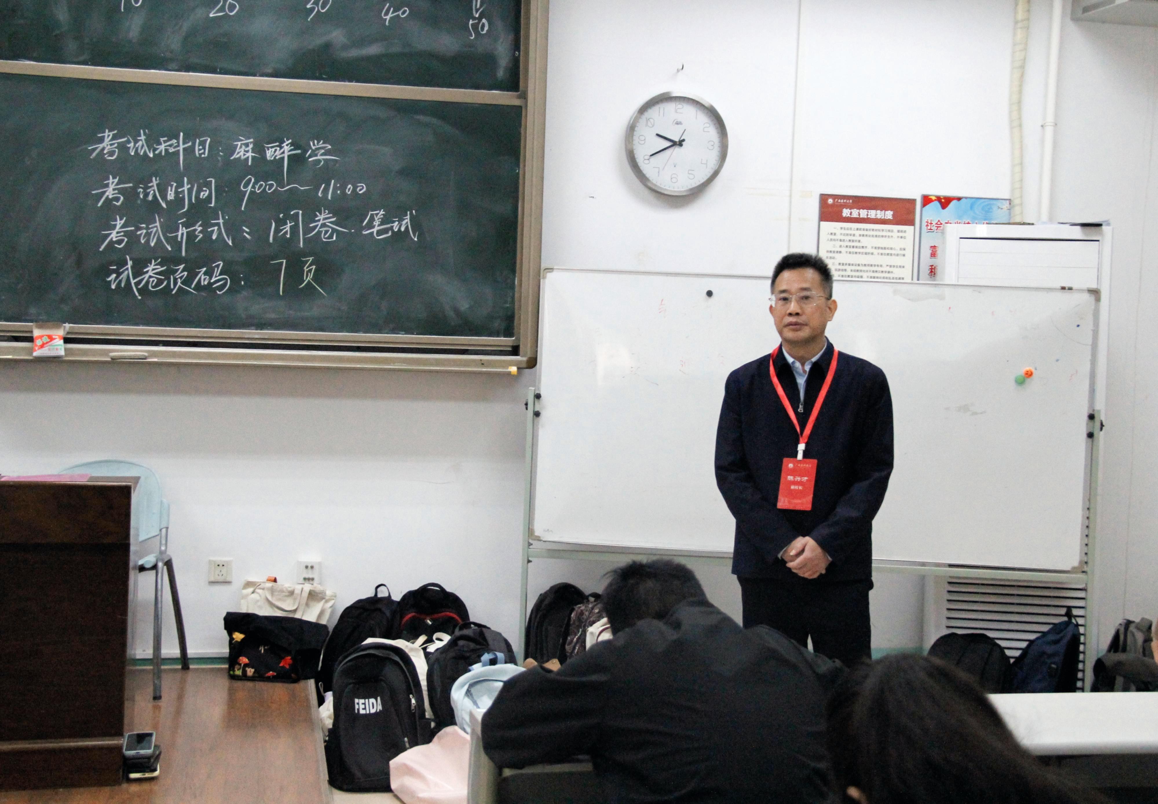为进一步加强考风考纪建设,营造公平公正的考试环境,1月6日至10日,在我校2024年秋季学期“考试周”期间,学校党委书记黄照权、校长曾志羽、党委副书记刘灵光、副校长陈兴才、卢德成、陈俊强、唐卫中分别带队深入校本部、武鸣校区及玉林校区各考场,全面开展期末考试巡考工作。学校教评中心、教务处、学工处、信息中心、武鸣校区管理中心等部门负责人及校教学督导组专家陪同巡考。