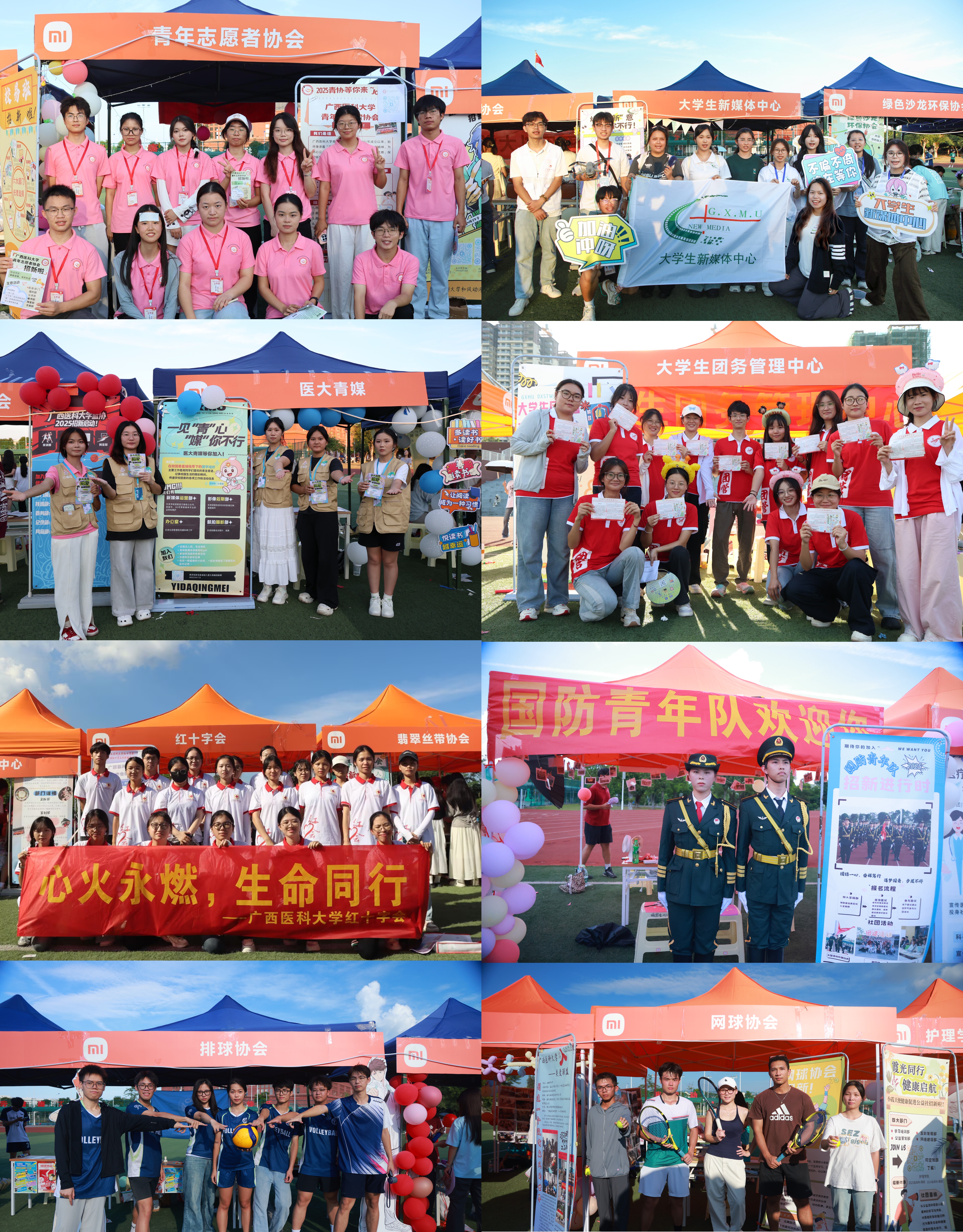 医路奋进启新征程,社团争彩齐飞扬。为丰富校园文化生活,展现医大青年的蓬勃朝气,充分发挥学生社团育人功能。9月28日,由学校团委主办的“青春医young·社彩飞扬”2025年学生社团招新暨社团文化节在南宁-武鸣校区举办,活动累计吸引了近5000余名师生参与。