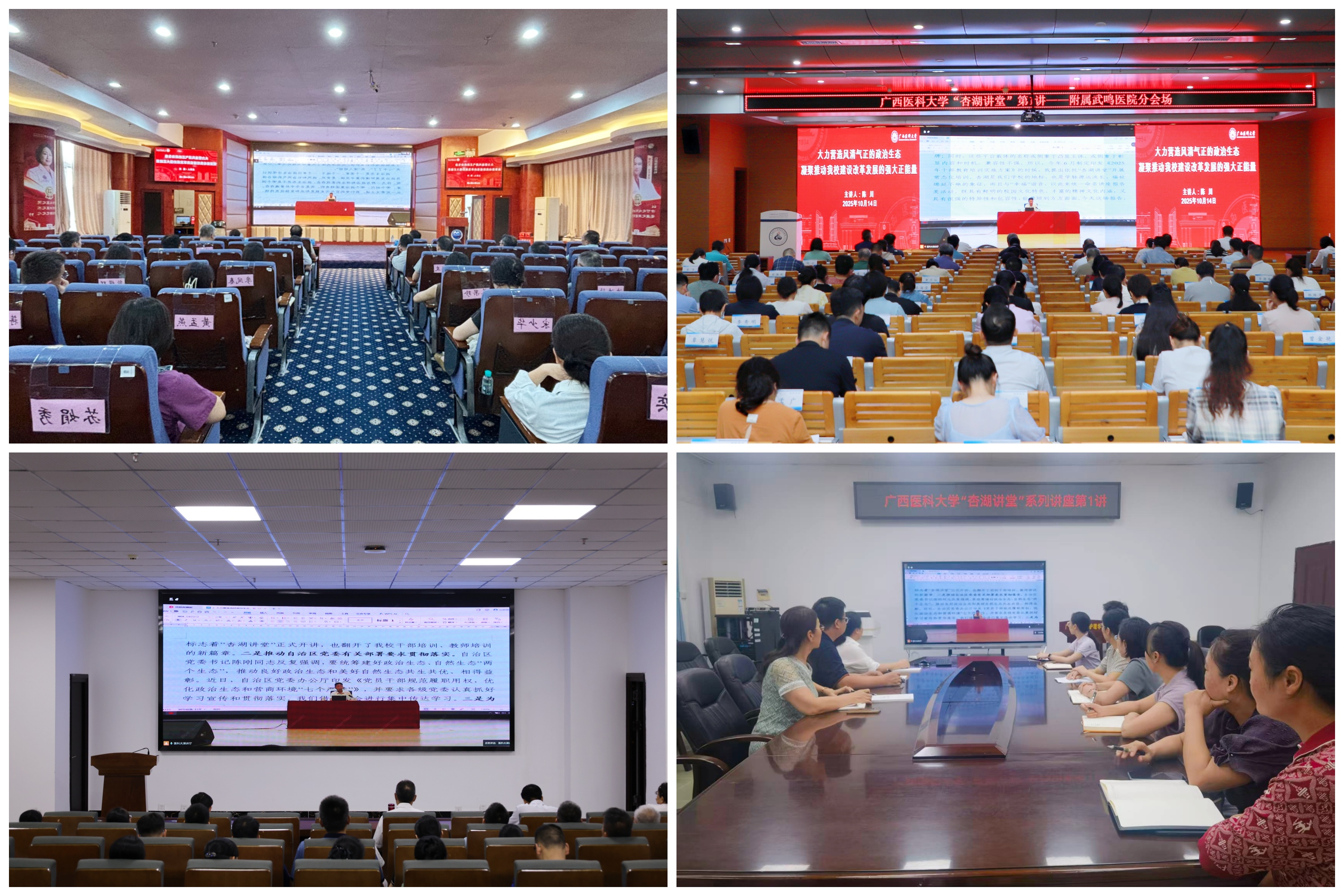 2025年10月14日下午,全新打造的我校干部教育培训品牌“杏湖讲堂”第1讲在校本部图书馆演讲厅正式开讲。校党委书记陈川以《大力营造风清气正的政治生态,凝聚推动我校建设改革发展的强大正能量》为题作专题辅导报告。校长曾志羽主持报告会,全体在校校领导、校本部全体处级干部和科级干部在主会场参会,7个独立法人单位的班子成员和中层干部在分会场同步参加学习。