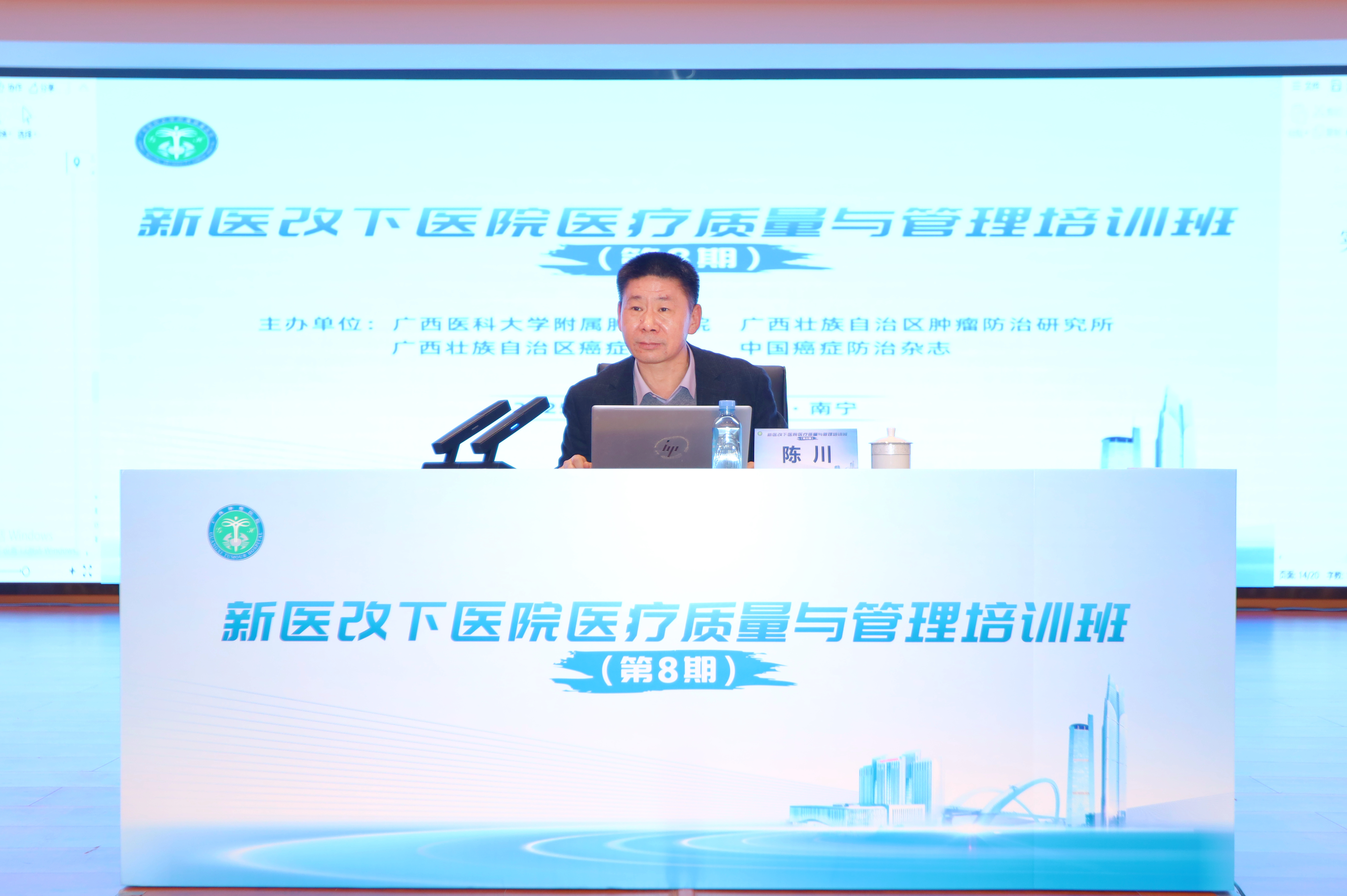 11月22日,由附属肿瘤医院、中国癌症防治杂志主办的新医改下医院医疗质量与管理培训班(第8期)在附属肿瘤医院五象院区举办。学校党委书记陈川受邀作专题授课,学党委常委、副校长卢德成出席培训班。