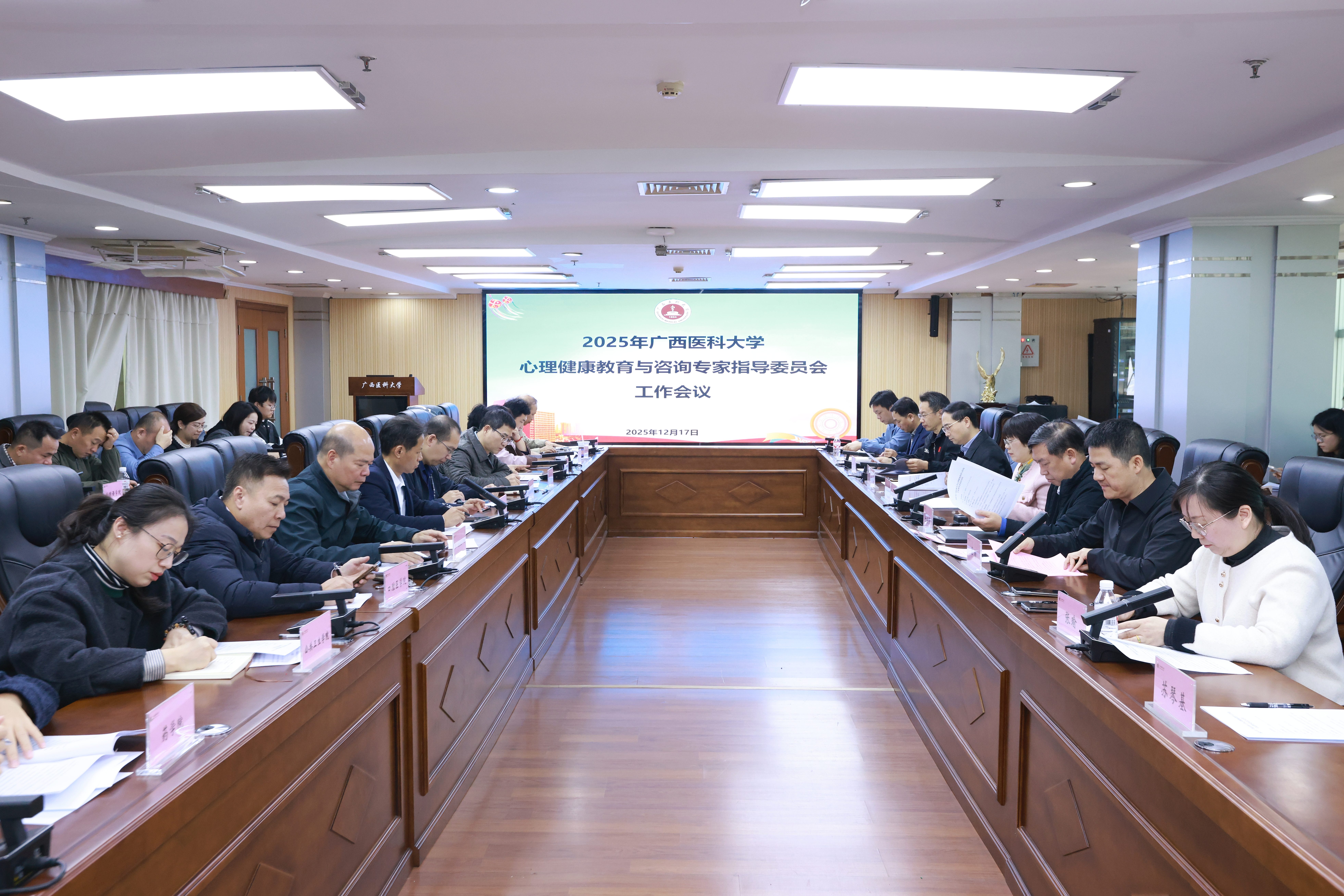 为深化心理健康教育“校医协同”育人模式,全面提升我校心理育人质量,12月17日,广西医科大学2025年心理健康教育与咨询专家指导委员会会议在校本部综合楼14楼会议室举行。学校副校长陈俊强出席会议并讲话。学工部(处)长、心理中心主任覃雄主持会议。